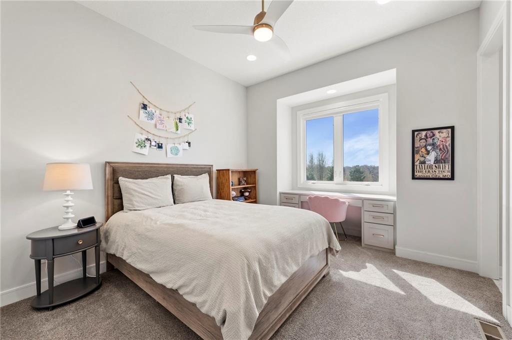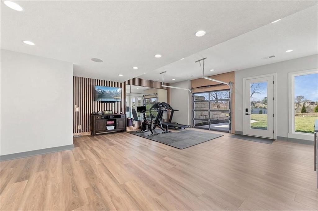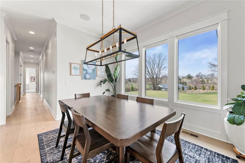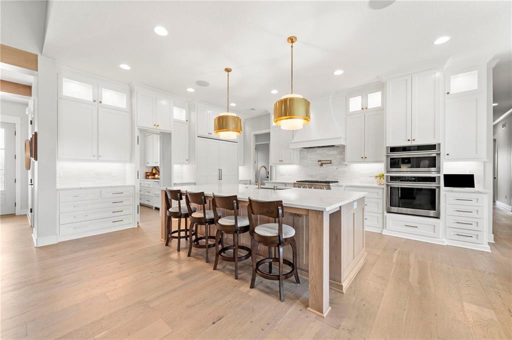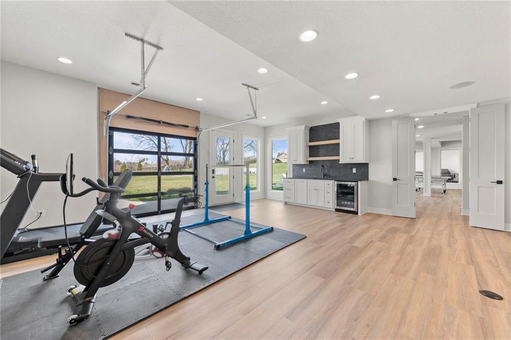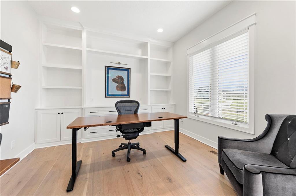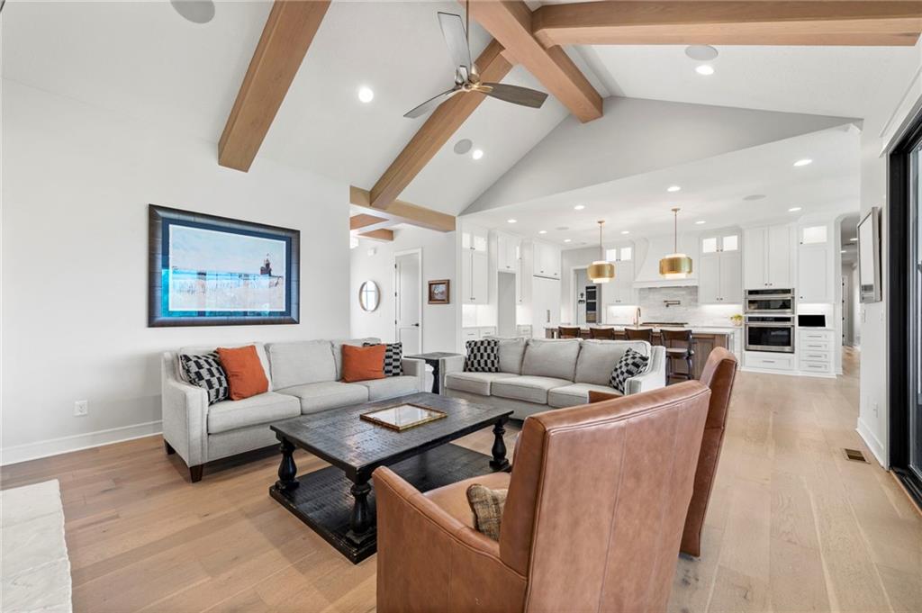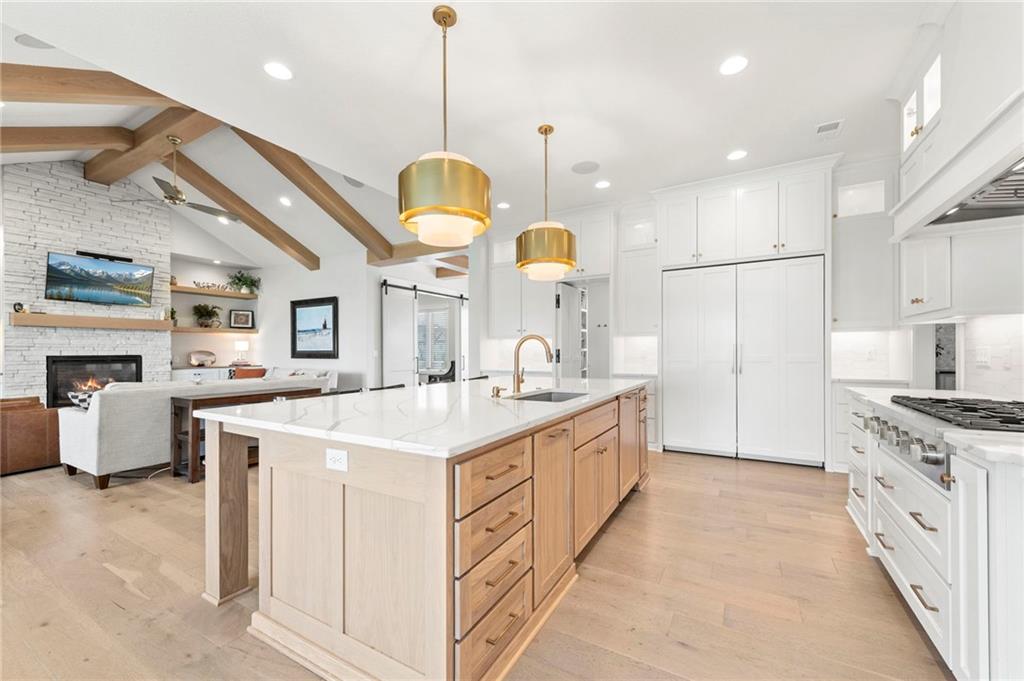YOU HAD ME AT PICKLEBALL !!! TRUE RANCH w/ "5 BEDROOMS" ON THE MAIN LEVEL + OFFICE = 3300 + sq ft w/ over 6500 sq ft total sits on 1.5 acres! ENJOY your own PICKLEBALL/SPORT COURT & FLAT BACKYARD!!! THIS ESTATE HOME WAS CUSTOM DESIGNED FOR A BUILDER'S FAMILY. Park Hill South High School. Amazing 360 degree views as this homesite is a higher elevation, which adds privacy. Winding driveway with large turnaround area takes you to the side entry 3 car garage. Double Entry 8 ft doors into the main foyer with office close by. The towering stone fireplace & cathedral beamed ceiling in the great room adds a grand effect. White oak floors lead to the open Gourmet kitchen w/ magnificent island, Quartz countertops and painted cabinets. The Butler's Pantry has many extras including, cabinets, shelving, microwave, beverage fridge AND water bottle filler! Sliding doors to the covered deck has a NEW fireplace for those cozy evenings to enjoy sports or movie. Stairs go down to the wondferful patio. You will love the drop space & laundry room combination between the garage & kitchen. AMAZING space! The primary suite includes a fireplace with beautiful stone floor to ceiling accent. Primary bath is everything you could want, walk in shower, double vanity, heated tile floor and tub! Memories galore in the LL recreation room w/ 2nd kitchen/ bar area. Ping pong / pool table space in the family room. Plenty of space to work or play with the exercise room which opens up with a garage door to the magnificent backyard. The 6th bedroom suite in the lower level is private and quiet! There is another 1/2 bath on the Lower Level conveniently located in case there is a pool in the future ! This is a Unique and well designed Estate home ... so many opportunities w/ the backyard and outdoor living spaces. Beautiful sunsets await !