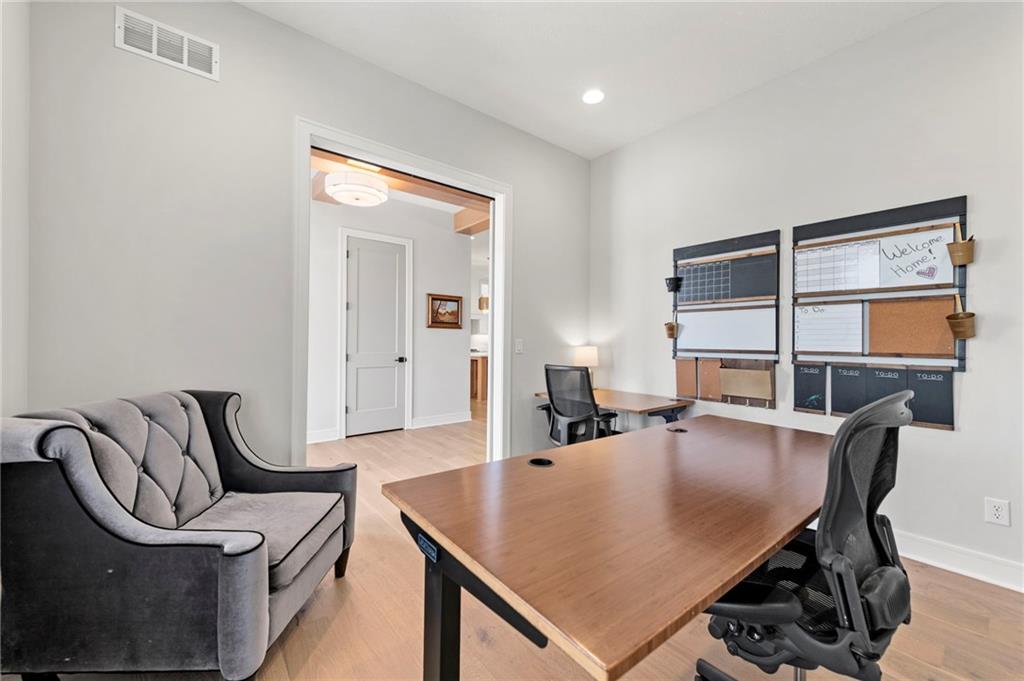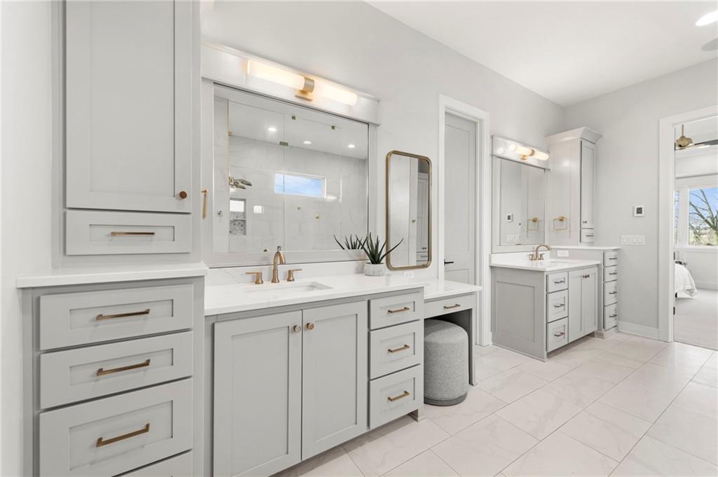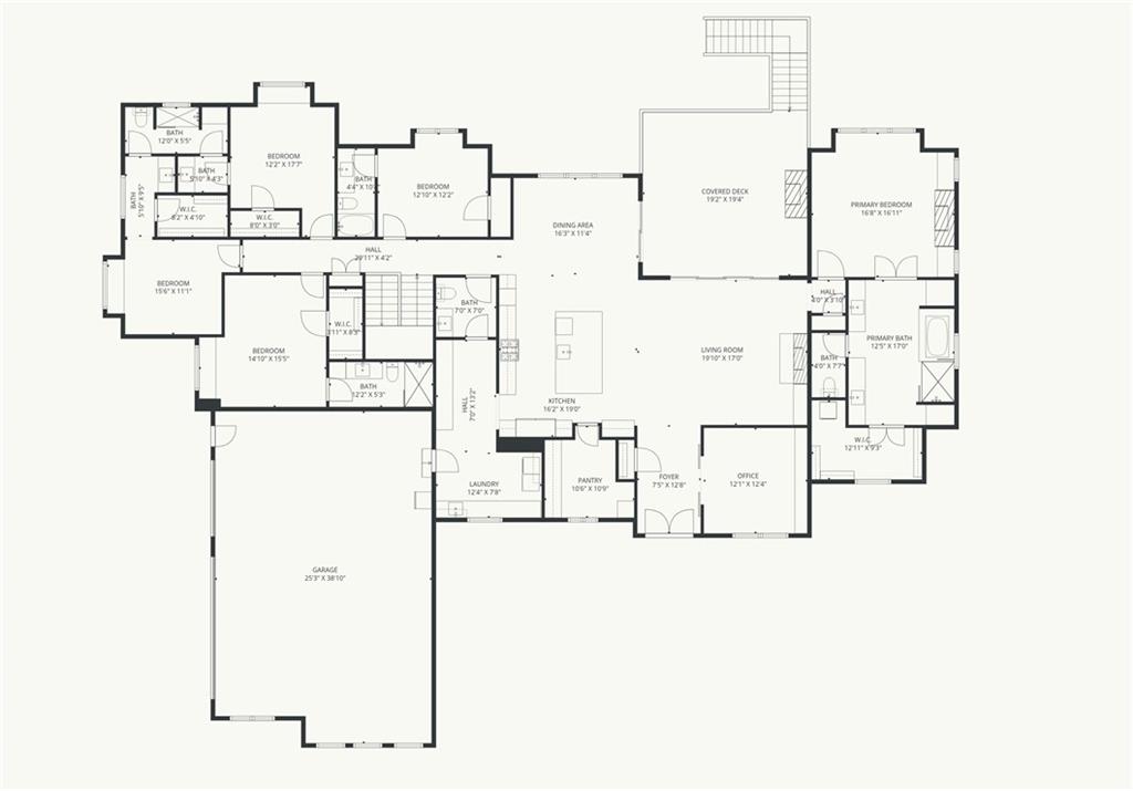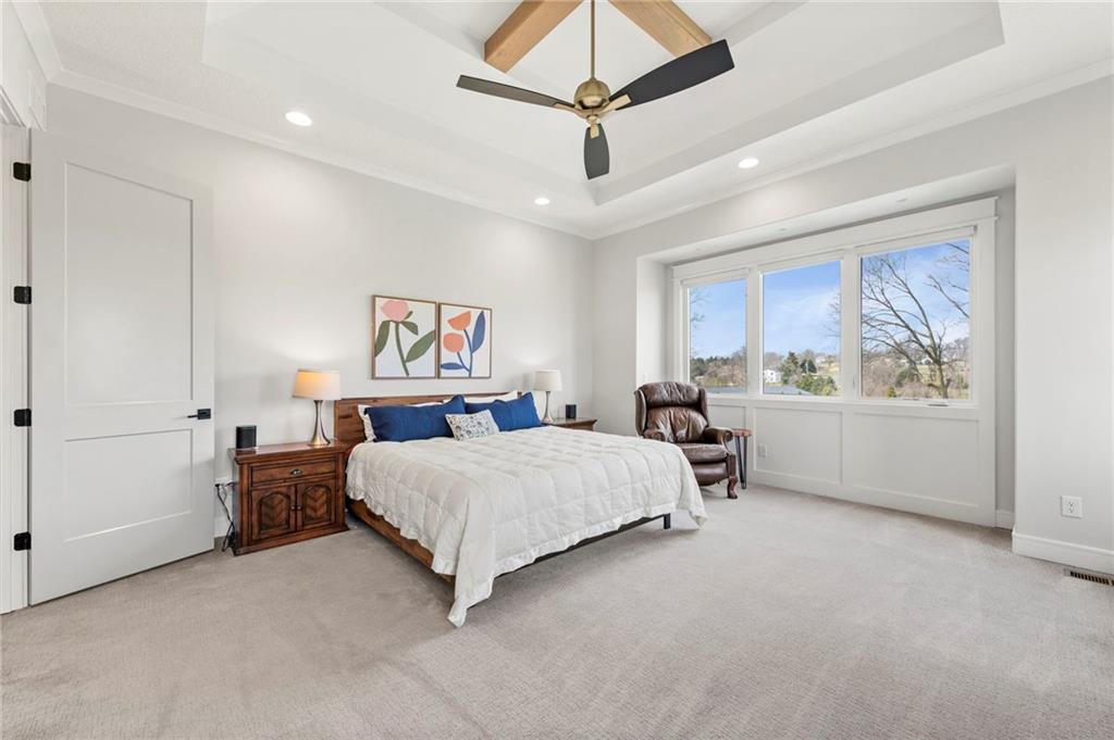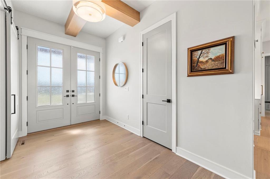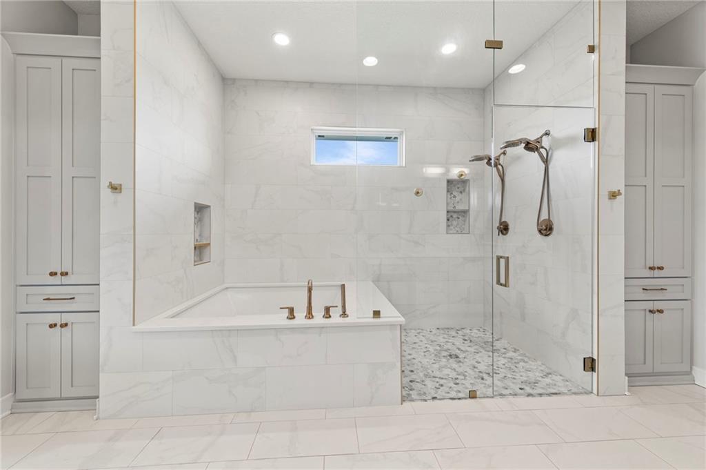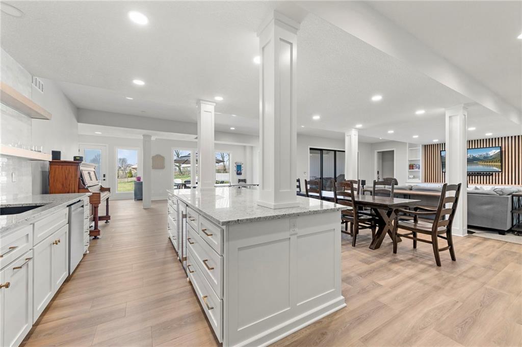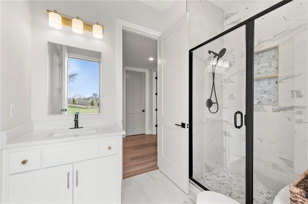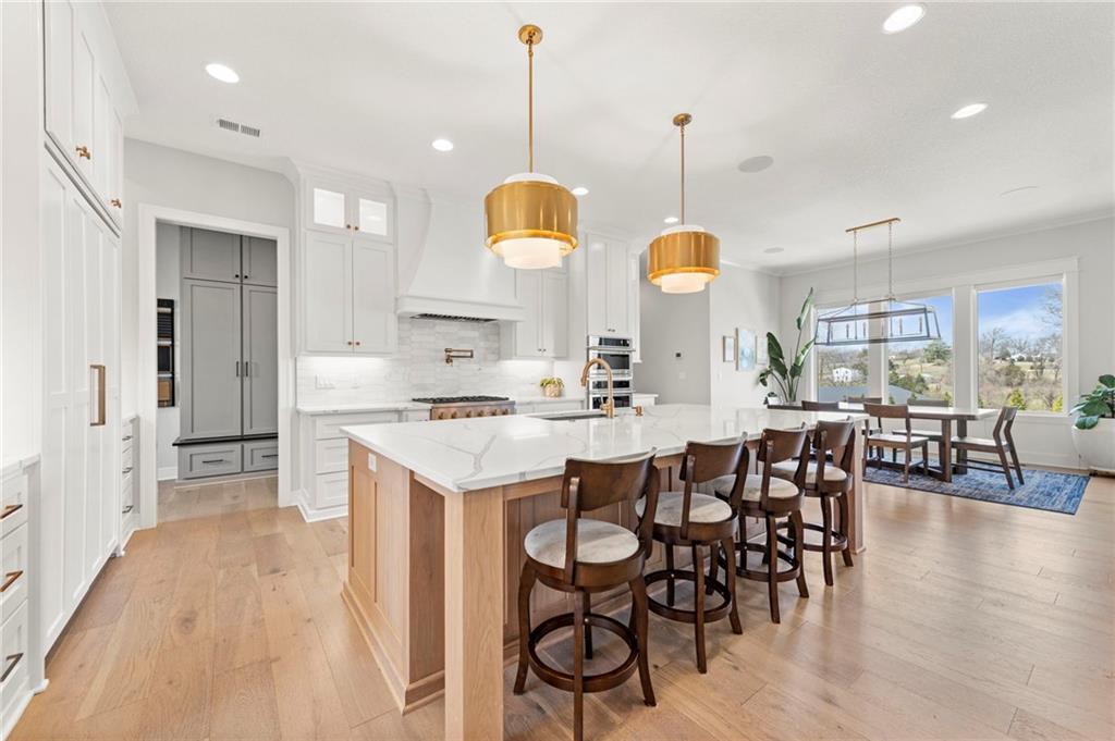 YOU HAD ME AT PICKLEBALL !!! TRUE RANCH w/ "5 BEDROOMS" ON THE MAIN LEVEL + OFFICE = 3300 + sq ft w/ over 6500 sq ft total sits on 1.5 acres! ENJOY your own PICKLEBALL/SPORT COURT & FLAT BACKYARD!!! THIS ESTATE HOME WAS CUSTOM DESIGNED FOR A BUILDER'S FAMILY. Park Hill South High School. Amazing 360 degree views as this homesite is a higher elevation, which adds privacy. Winding driveway with large turnaround area takes you to the side entry 3 car garage. Double Entry 8 ft doors into the main foyer with office close by. The towering stone fireplace & cathedral beamed ceiling in the great room adds a grand effect. White oak floors lead to the open Gourmet kitchen w/ magnificent island, Quartz countertops and painted cabinets. The Butler's Pantry has many extras including, cabinets, shelving, microwave, beverage fridge AND water bottle filler! Sliding doors to the covered deck has a NEW fireplace for those cozy evenings to enjoy sports or movie. Stairs go down to the wondferful patio. You will love the drop space & laundry room combination between the garage & kitchen. AMAZING space! The primary suite includes a fireplace with beautiful stone floor to ceiling accent. Primary bath is everything you could want, walk in shower, double vanity, heated tile floor and tub! Memories galore in the LL recreation room w/ 2nd kitchen/ bar area. Ping pong / pool table space in the family room. Plenty of space to work or play with the exercise room which opens up with a garage door to the magnificent backyard. The 6th bedroom suite in the lower level is private and quiet! There is another 1/2 bath on the Lower Level conveniently located in case there is a pool in the future ! This is a Unique and well designed Estate home ... so many opportunities w/ the backyard and outdoor living spaces. Beautiful sunsets await !