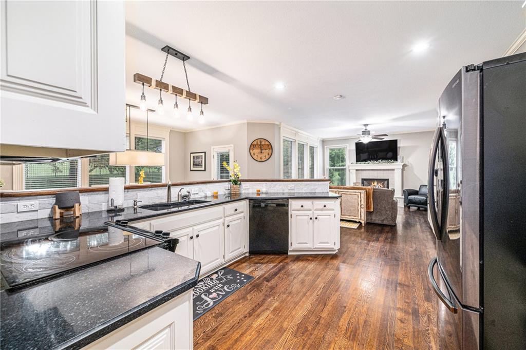 Welcome home to this expansive two-story home with the perfect blend of comfort and luxury. The main floor is equipped with a huge kitchen with plenty of storage, breakfast area, and hearth room, which make entertaining in this space a breeze. The formal dining room, office, and living room on this floor give space for everyone. Enjoy the warmth and ambience of fireplaces in both the hearth room and living room. Upstairs, you will find an incredibly enormous primary bedroom with a cozy sitting area. The ensuite bathroom is complete with dual vanity, jetted tub, and separate shower, as well as a closet big enough to hold even the largest of wardrobes. Three more generously sized bedrooms, all with attached bathrooms, round out the level. In the basement, you will find a large open area with a kitchen-style bar, plenty of counter space, and storage, great for use as a hang-out area with media, gaming tables, or easily expanded for additional living space, guest rooms, or a home office. The private backyard includes a large deck. To allow the next owner to personalize the home, the seller is offering a $5,000 flooring allowance with an acceptable offer. This home is a must see.