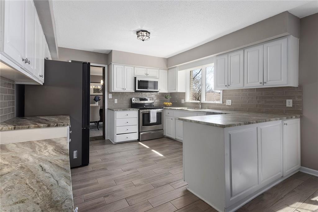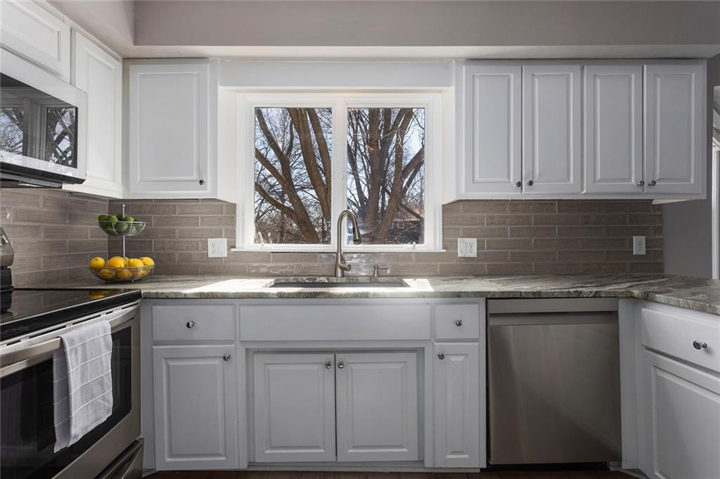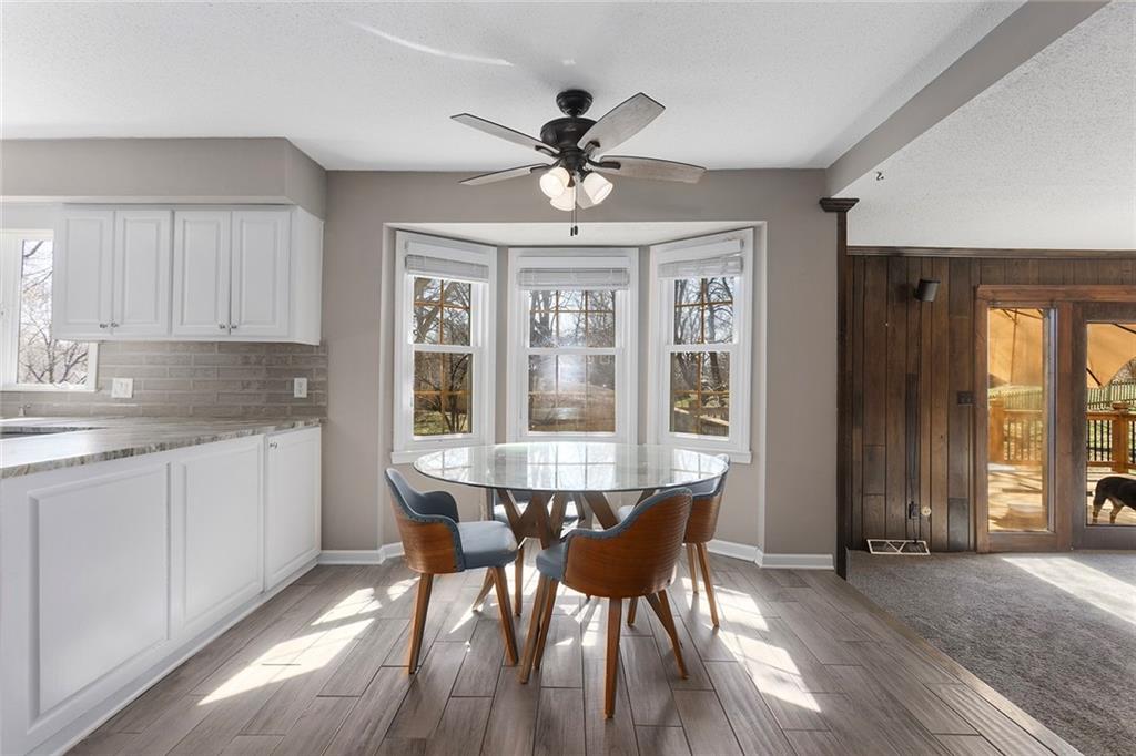 Charming Tudor with classic character and functional living spaces. Formal Living Room features a dramatic fireplace, abundant natural light, and crown molding. Spacious Formal Dining Room flows from the kitchen — ideal for entertaining. Hearth Room with brick fireplace and built-ins opens to a large deck overlooking the fully fenced yard. Luxury Primary Suite includes fireplace, double vanity, and generous storage. Finished walk-out basement offers a wet bar, fourth fireplace, and half bath. Located on a cul-de-sac in the coveted Staley/NKC School District in a market where homes in this region continue to hold value and see modest appreciation.