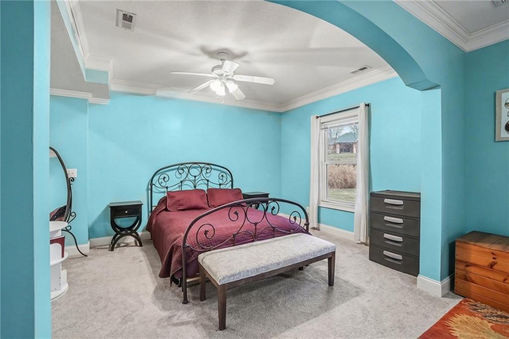 1101 Pebble Beach Dr is a cul-de-sac DREAMHOME!!! Custom designed with soaring ceilings and Ornate Millworks ***Of special note: ZONED AC for a cool upstairs in summer!!, ALL NEW lower level kitchenette, TWO brand NEW 40-Gal Water Heaters, NEW Water Softener, Double-hung Windows and new screens, Recessed Lighting, Annually maintained Sprinkler System, Vinyl-Covered Garage Floor, and all new electrical in the lower level and outdoor shop. The main floor entry welcomes you with a front view office and a flex room which could be a 6th bedroom. BIG bay windows in the living room provide natural light and the fireplace adds ambiance with just the flip of a switch. The impressive kitchen is designed with custom cabinets, granite countertops and a BIG walk-in pantry ! (Anyone can appreciate the hidden pull-out rubbish bin!!) LG suite of appliances stay with the home!! The built in bar is a breakfast must plus the attached formal dining is elegantly appointed with chandelier and tray ceiling. At the top of the upper level landing, the primary bedroom is 15' X 14' w/ fully remodeled primary bath featuring separate tub, shower, double vanity with new countertop, and new flooring. 3 bedrooms on the upper level share a remodeled hall bathroom. One laundry room is conveniently on the bedroom level and a second laundry room is located on the main level. On the lower level find a full living space with a new kitchenette, extra-large 5th bedroom with its own sitting room and walk-in closet PLUS a full bathroom accessible also from the 27' X 19' Rec Room!! The Lower Level has a walk out to the patio w/ easy access to the built-in FOURTH garage -ready for major hobbies with the new NEMA 4 electrical. Enjoy the coming season with meticulous landscaping and APPLE TREES! Elegance and function are apparent throughout this amazing home. Make it YOURS!!!
