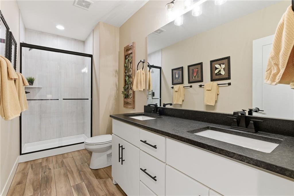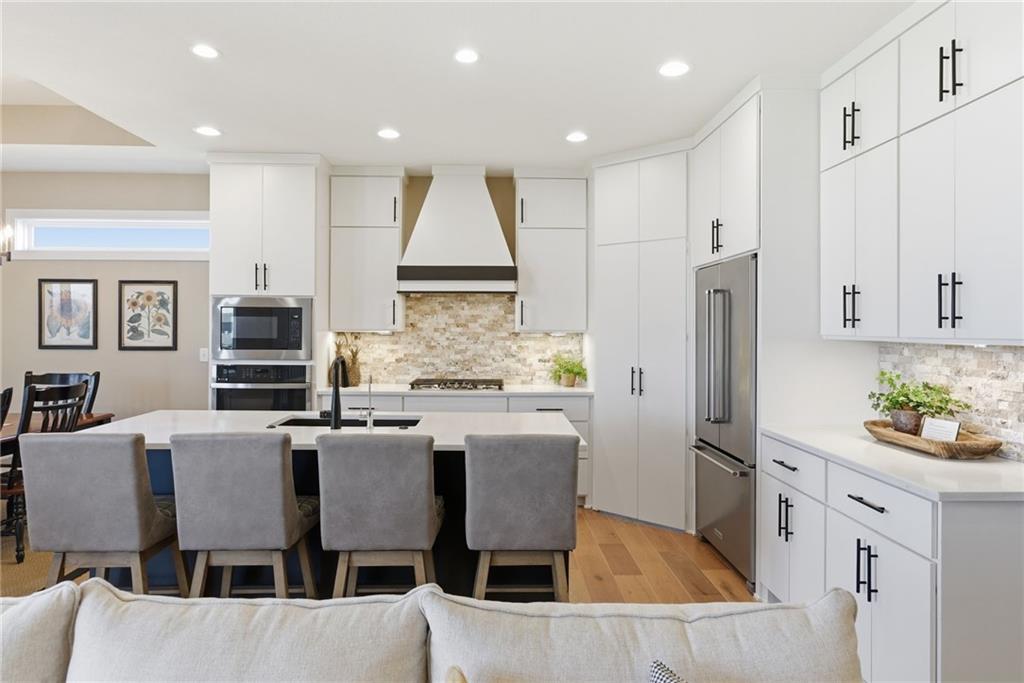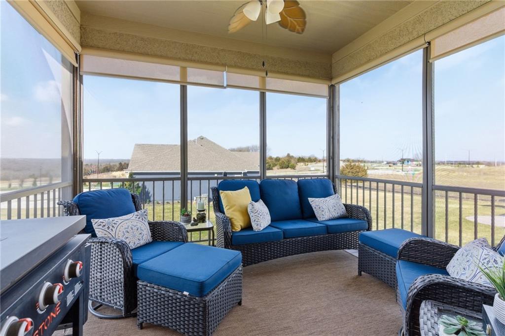 Saying this home has all the bells and whistles is an understatement! SO MANY UPDATES! And MAINTENANCE PROVIDED! No need for a shovel or a lawn mower--this home has that covered! Walk in & immediately admire the 14 foot cathedral ceiling in the great room! Stunning 5 in white oak floors, custom lighting, & plantation shutters adorn the main level living space! You'll love relaxing in front of the stone fireplace w/custom built shelves on each side! Next, venture into the gourmet kitchen with large, quartz island, gas cooktop & custom cabinets to the ceiling! 9 custom drawers under your cooktop make pot and pan storage so convenient! The walk-in pantry offers exceptional design with shelves/outlets for appliances so those are tucked out of the way! Do you love dining outdoors? You'll enjoy many nights eating dinner on your screened-in composite deck with a mount for your TV! Enjoy sitting out there admiring the huge almost 1/2 acre lot (that you don't mow!). Unwind each night in the primary bedroom with custom barn door to your primary bathroom. Huge walk-in tile shower, granite top vanity with under cabinet lighting and porcelain floors are just some of the features worth mentioning! Laundry room adjacent to your bathroom is convenience at its finest! As you go downstairs, be sure not to miss the large picture windows with custom motorized shades! Lower level welcomes you with a custom built electric fireplace surrounded by shelves. You won't even realize you're in the lower level as it boasts 11 foot ceilings and a 2ND FULL KITCHEN! Kitchen features quartz countertops, under cabinet lighting, custom cabinets, refrigerator, stove, dishwasher, microwave and WALK-IN PANTRY (And YES, you read that right! This is the lower level!) Want to grill? Head on out to your screened in patio with built-in gas grill! Wiring for a hot tub already available on this patio as well! Tons of storage! Don't miss out on this one! This immaculate home is the true definition of a GEM!
