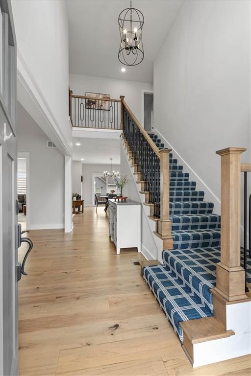 This stunning two-story home welcomes you with a charming front porch and grand entry that immediately sets the tone. Just off the entry, a versatile front living room offers the perfect space for a home office, formal dining, or playroom. Designed for both everyday living and entertaining, the open main level features a spacious great room with custom built-ins flanking a beautiful stone fireplace, all seamlessly connected to the kitchen. The kitchen is a true standout, featuring abundant counter space, custom cabinetry with a decorative hood, under-cabinet lighting, a gas range, an oversized island, and a large walk-in pantry. A highly functional layout continues with a true mudroom off the garage, complete with a custom boot bench and desk area—perfect for keeping everything organized. Upstairs, you’ll find generously sized bedrooms, all featuring walk-in closets. The primary suite is a true retreat with a spectacular ensuite bath and a huge walk-in closet. The partially finished basement offers immediate versatility with a bonus room or office and a half bath already plumbed for a shower. With sheetrock and electrical work partially completed, this space is primed for your finishing touches—creating the opportunity to add significant additional living space and value. Step outside to enjoy a fenced backyard and a huge side yard. Located in the highly sought-after Symphony Farms subdivision, residents enjoy a resort-style pool, community event barn, pickleball and basketball courts, and easy access to all area schools. Just minutes away, Celebration Park offers miles of trails, ponds, and sports fields—bringing together convenience, recreation, and a true neighborhood lifestyle. This amazing home has it all. Don't miss it!