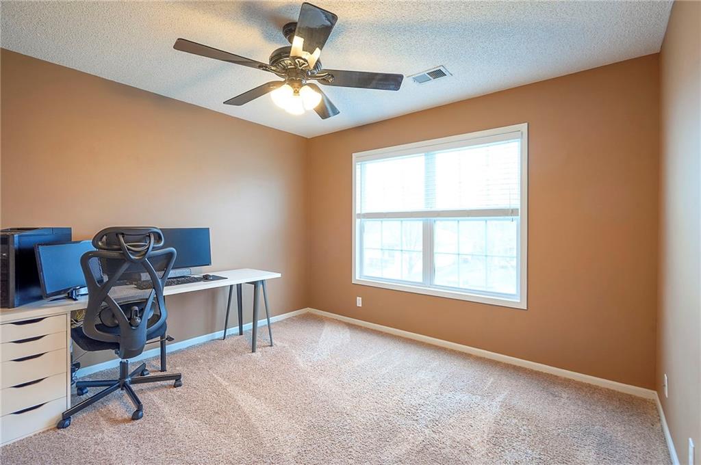 Fantastic 2-story home in a prime Olathe location, tucked away on a cul-de-sac street. Light, bright, and airy throughout with wall of windows. Front room offers flexible space for a home office, formal dining, or additional living area. You'll love the spacious family room featuring a fireplace and built-in bookshelves that flows seamlessly into the kitchen with large island, walk-in pantry, plus main level half bath. Upstairs, you’ll find a generous primary suite with an updated shower, double vanities, soaker tub, and a large walk-in closet. Two additional bedrooms, a full hall bath, and convenient bedroom-level laundry complete the second floor. The unfinished basement offers excellent storage or future finish potential. Enjoy the level backyard, 2-car garage, and fresh updates including new carpet on the main level and stairs. Olathe schools and move-in ready! OFFER DEADLINE: 10:00 a.m. Saturday, 3/28.
