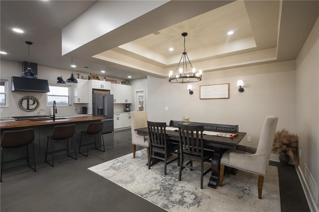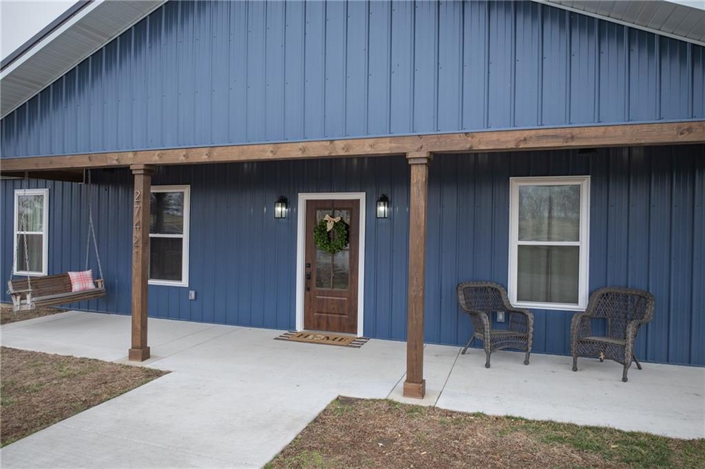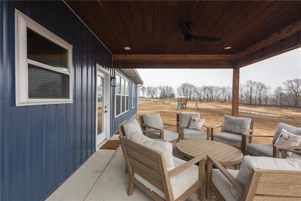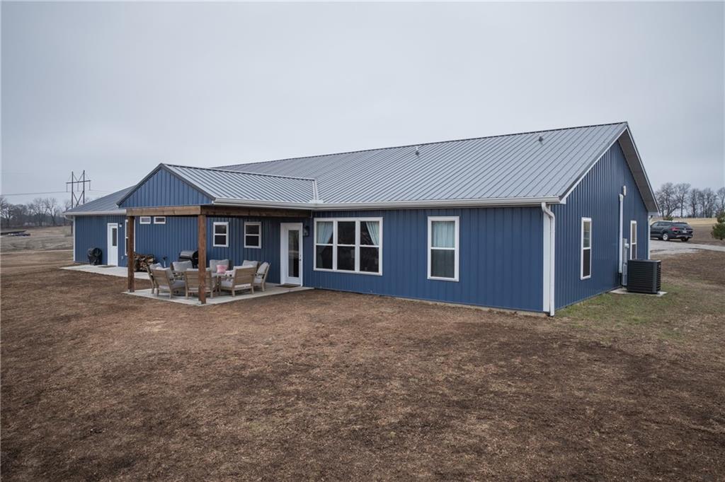 Rarely do you find a property that perfectly marries high-end custom design with total accessibility on over 10 acres of pristine Missouri land. This 2,400 sq. ft. ranch, completed in 2023, was thoughtfully built for "forever" living with a fully ADA-compliant, barrier-free floor plan and wide doorways throughout. The heart of the home is a chef’s dream, featuring custom polished concrete floors and a stunning kitchen anchored by a massive Black Walnut island. High-end GE Café line appliances, including a 36" gas convection oven, are surrounded by sleek quartz countertops, making it as functional as it is beautiful. The primary suite serves as a true sanctuary, offering a jetted tub and a spacious, zero-entry tile shower with a luxurious rain-head. Efficiency and safety were not overlooked; the 1,000 sq. ft. garage includes a professional 7x11 concrete safe room for peace of mind. Outside, the 10.49-acre estate offers ultimate serenity. A gravel drive lined with young pine trees ensures future privacy, while a budding orchard of young fruit trees adds to the homestead charm. As an added bonus, the custom-built chicken coop was designed to perfectly match the home and will stay with the property. From the durable metal roof to the high-end interior finishes, every inch of this Sibley retreat exudes quality and care. *Please note that seller is an owner agent.