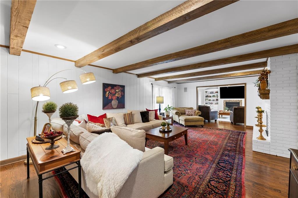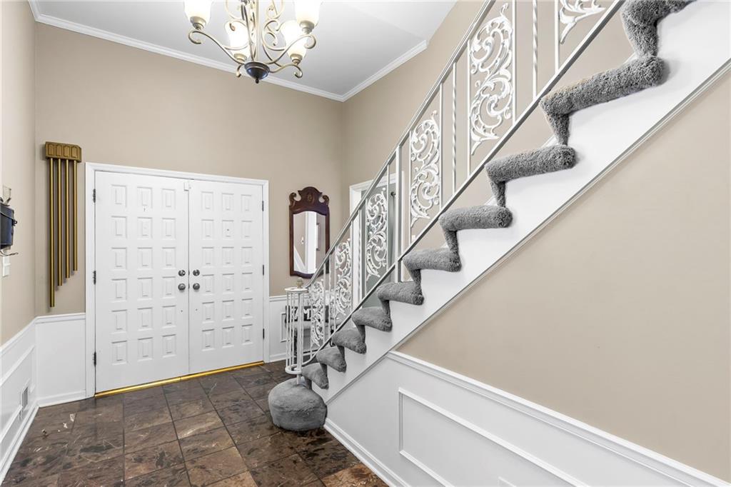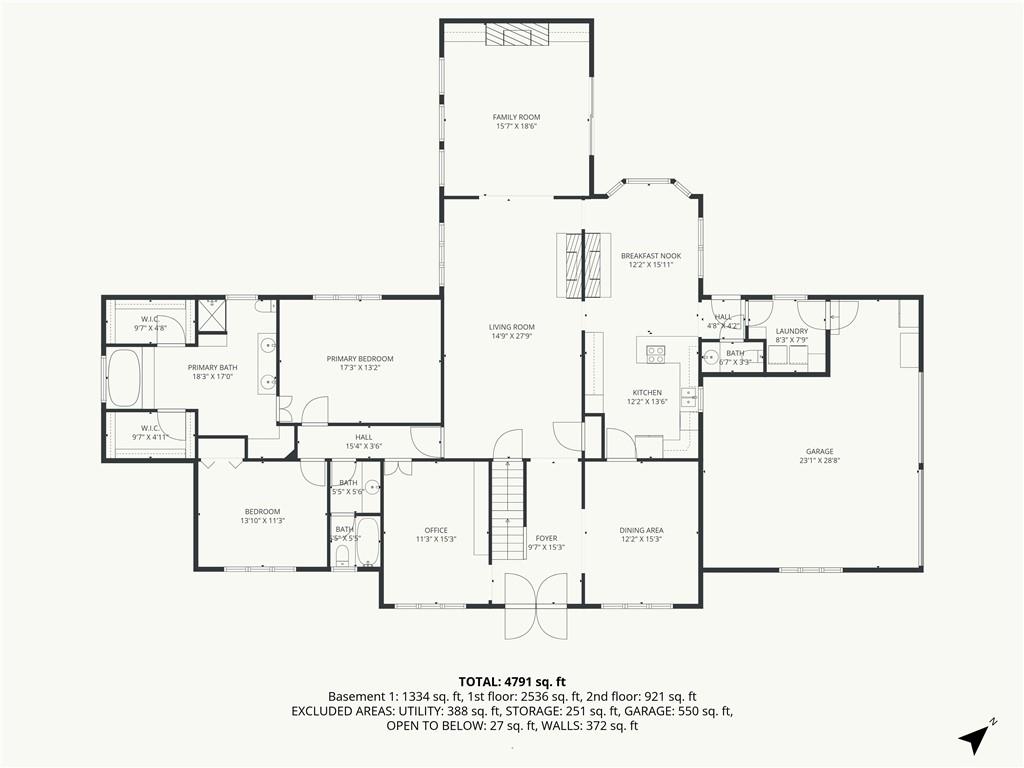 This spacious 5-bdrm, 4 bath, and 2 half bath home offers generous room sizes and a flexible layout perfect for everyday living and entertaining. The 28x15 living room features a stunning double-sided fireplace. A bright family roon with vaulted ceilings, fireplace, and TV provides a cozy, year-round retreat. The 1st floor includes a primary bdrm with en-suite bath, a guest bedroom and a dedicated office—ideal for convenience and multigenerational living. The second floor has 3 large bdrms and 2 baths. The finished basement with a full bar adds excellent entertaining space. It has a new roof, gutters, exterior paint and DW. A beautifully designed home with space for everyone.