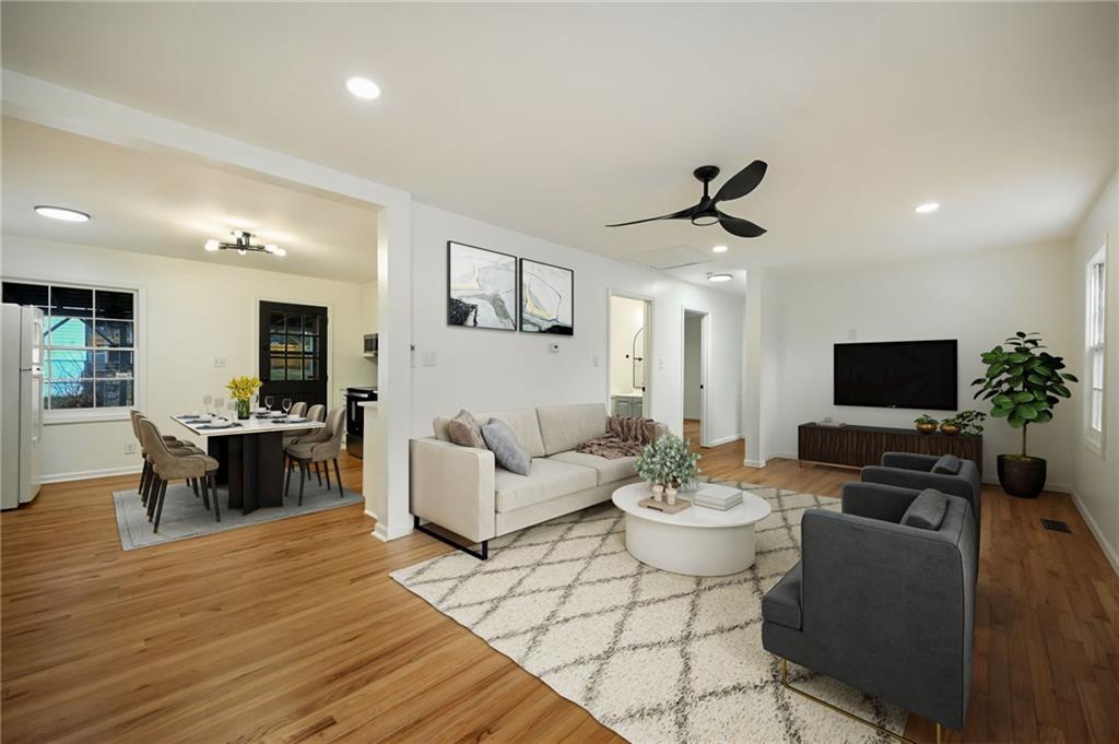 This beautifully updated ranch-style home offers an open-concept main living space and an impressive list of updates from head to toe. The main level features refinished hardwood floors, fresh interior paint, and updated light fixtures throughout, creating a bright and welcoming atmosphere. The layout includes two full bedrooms and two full bathrooms on the main level, making it both functional and comfortable. The primary suite features a generously sized closet and a fully updated bathroom with a tiled shower and bathtub, new LVP flooring, updated vanity, and modern hardware. The hall bathroom has also been completely updated with a beautifully tiled shower and stylish finishes. The kitchen has been thoughtfully refreshed with new granite countertops, a tiled backsplash, updated hardware, stainless steel appliances, and a new faucet—perfect for both everyday living and entertaining. The finished basement adds incredible additional living space, including a third bedroom and a fully updated bathroom featuring a tiled shower and updated finishes. There is also a fourth non-conforming bedroom, along with plenty of additional room for storage. Brand-new carpet has been installed throughout the basement. Outside, the property offers excellent parking and outdoor amenities, including a one-car attached garage and an additional carport. Enjoy relaxing on the covered rear porch, graciously sized corner lot, and take advantage of the fully enclosed shed, perfect for yard tools, gardening equipment, or additional storage. With its thoughtful updates, flexible living spaces, and fantastic features throughout, this home truly is a must-see.