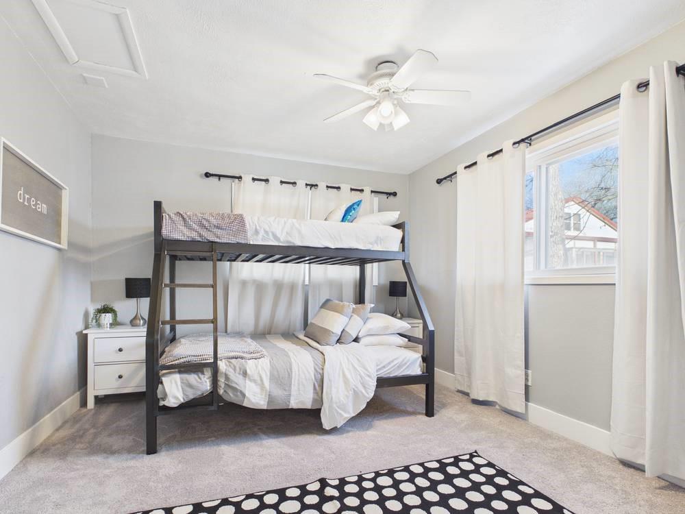 Situated on the tranquil shores of Lake Fort Scott, this fully furnished property features a charming main house and a separate recreation building, ideal for hosting guests and enjoying leisure time. The main house boasts three bedrooms and two-and-a-half bathrooms. Spanning three levels, the residence features a bright and airy open floor plan on the main level, highlighted by vaulted ceilings and modern stainless steel appliances in the kitchen. The expansive deck provides ample space for outdoor gatherings, while the lower-level covered patio serves as an additional entertainment area, ideal for relaxing by the lake. The separate recreation building enhances the property with an entertainment area, complete with a full bath, wet bar, sleeping area, and dining space, making it an excellent retreat for relaxation or entertaining. Additional perks include two storage sheds for convenience and a private boat dock complete with a lift, making it a perfect retreat just an hour and 15 minutes from the Kansas City area. Enjoy lakeside living at its finest! The exterior of the main house has just been completely repainted with wood repair and interior touch-ups. Lake Fort Scott has a $150 a year lake frontage fee and a monthly sewage bill paid to the city.