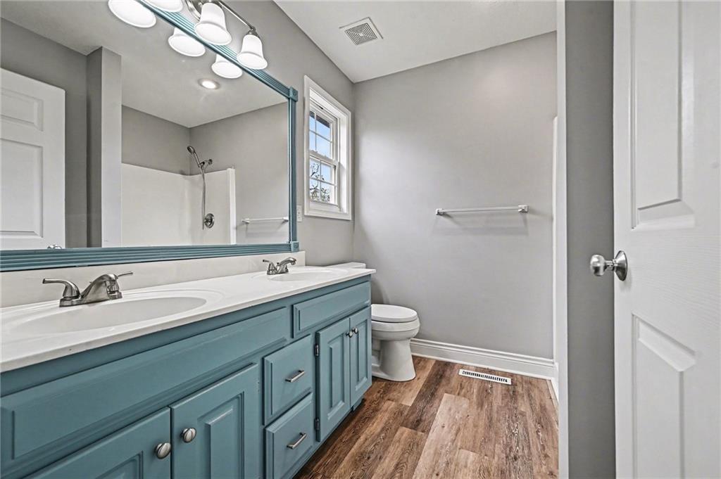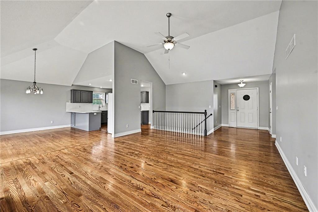 Built in 2002 and beautifully refreshed, this reverse 1.5 story checks all the boxes. With 3 bedrooms, 2 baths, and laundry all on the main level, this layout offers true main-floor living. You’ll love the hardwood floors, vaulted ceilings, and open feel throughout the main living area. The walk-out lower level features a huge family room, an additional bedroom, full bath, and dedicated office space — perfect for guests, work-from-home life, or both. And storage? You’ll have plenty. Outside, enjoy a fenced backyard, plus peace of mind with new carpet, new paint, a brand-new driveway, new garage doors and a new roof. Truly move-in ready in a fabulous Swan Lake location. Close to Dubs Dread, the Legends, and great access to the airport. Access to Wyandotte County Lake and the award winning Piper Schools.