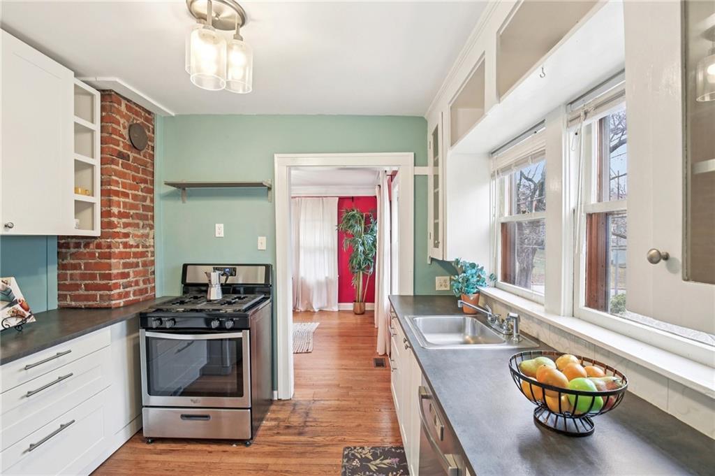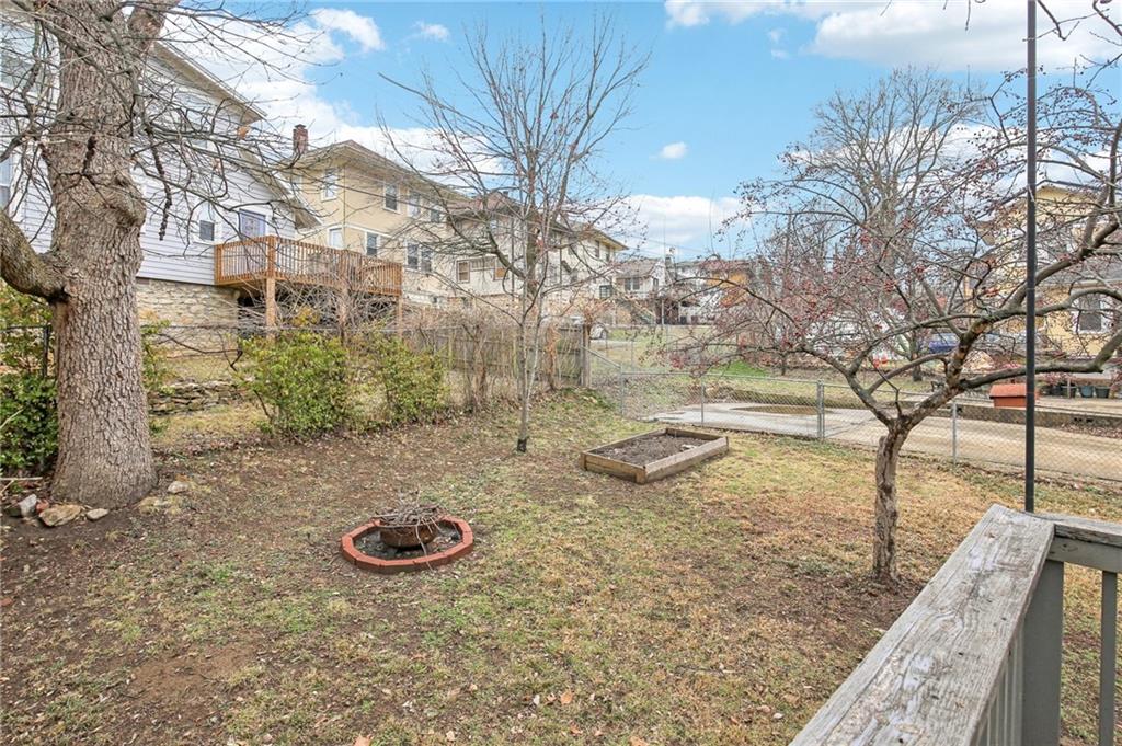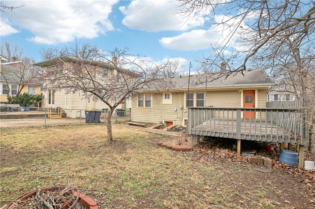 This classic 2-bedroom, 1-bath bungalow is rich with original character and timeless detail, tucked into a tight-knit neighborhood that feels like home. Natural light pours through the windows, highlighting the warmth and authenticity that make these early Kansas City homes so special. The covered front porch invites slow summer evenings and morning coffee rituals. Out front, thoughtfully designed landscaping features 62 native plants and a custom dry creek bed installed in Spring ’25—creating a yard that evolves beautifully with the seasons. In back, a spacious deck overlooks a fully fenced yard anchored by a stunning crabapple tree that bursts into vibrant fuchsia-pink blooms each spring and glows with rich orange tones in the fall. Off-street parking adds everyday convenience, while the location is hard to beat—just 5 minutes to Rockhurst and 10–12 minutes to UMKC. Whether you’re a teacher, student, alum, or savvy investor, this home offers original character, vibrant outdoor living, and an unbeatable Kansas City location.