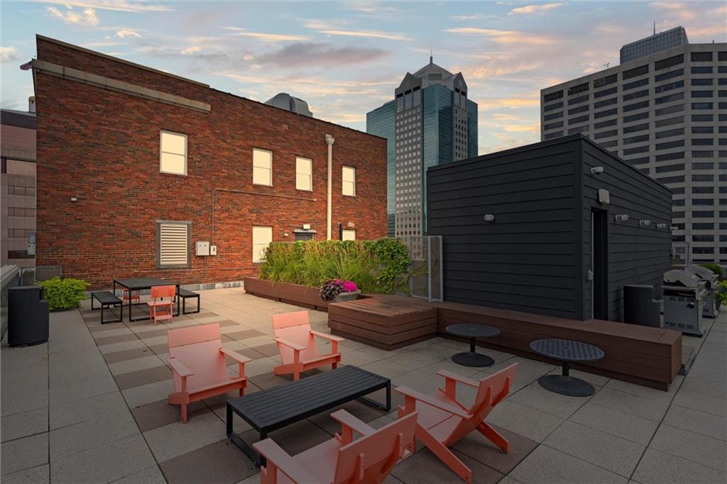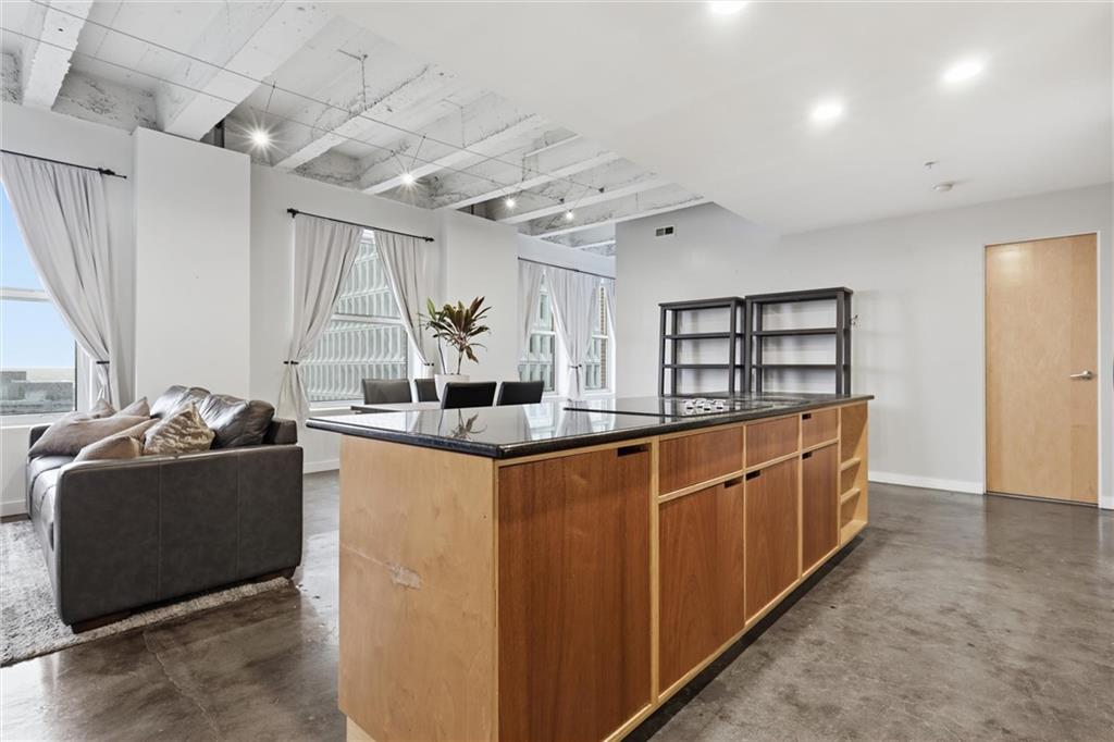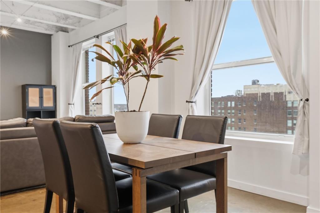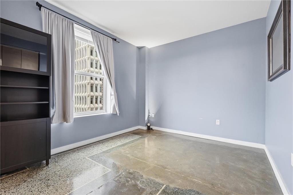 Experience the ultimate urban lifestyle with this rare opportunity to reside in a stunning condo within the historic Library District. Housed in the prestigious former New England National Bank Building, this exclusive 53-unit boutique residence is perfectly situated just one block from the streetcar line. This expansive one-bedroom, 1.5-bathroom home offers breathtaking northbound views, with oversized windows that flood the interior with an abundance of natural light. The sophisticated design features polished concrete floors, fresh interior paint, and soaring 10-foot ceilings, creating a serene urban oasis that ensures quiet and peaceful living. The modern kitchen is a chef’s delight, equipped with sleek wood cabinetry, granite countertops, and a massive center island. This culinary space flows seamlessly into a flexible, open-concept living area that accommodates endless configurations for entertaining or a dedicated home office, complemented by a convenient pantry with a full-sized washer and dryer. Residents enjoy access to a spectacular 360-degree rooftop terrace featuring panoramic vistas stretching from the downtown airport to Liberty Memorial. Your monthly dues include one secure parking space in the library garage, with options to lease additional spots as needed. Whether you are looking for a primary residence or a stylish pied-à-terre for the World Cup, you will be steps away from the city's premier attractions, including the Kauffman Center, T-Mobile Center, the vibrant River Market, Current Landing, and the Crossroads Art District. Some of the city’s best restaurants are within walking distance. The streetcar also provides easy transit south to the Country Club Plaza. There has truly never been a better time to call downtown Kansas City home.