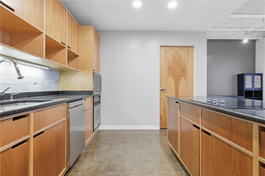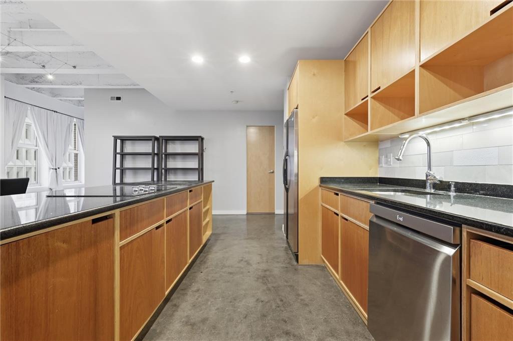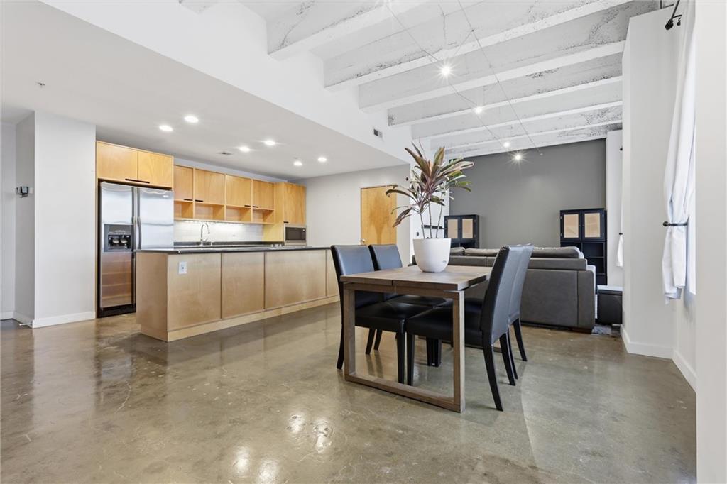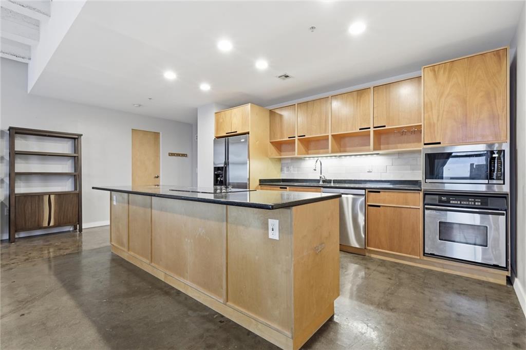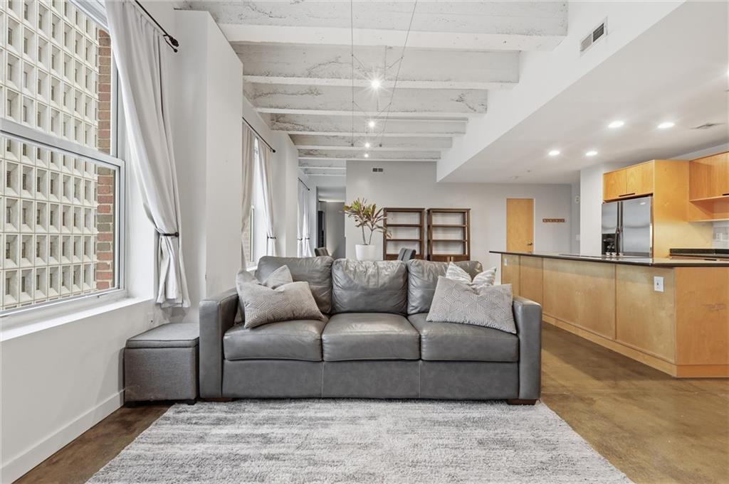 Experience the ultimate urban lifestyle with this rare opportunity to reside in a stunning condo within the historic Library District. Housed in the prestigious former New England National Bank Building, this exclusive 53-unit boutique residence is perfectly situated just one block from the streetcar line. This expansive one-bedroom, 1.5-bathroom home offers breathtaking northbound views, with oversized windows that flood the interior with an abundance of natural light. The sophisticated design features polished concrete floors, fresh interior paint, and soaring 10-foot ceilings, creating a serene urban oasis that ensures quiet and peaceful living. The modern kitchen is a chef’s delight, equipped with sleek wood cabinetry, granite countertops, and a massive center island. This culinary space flows seamlessly into a flexible, open-concept living area that accommodates endless configurations for entertaining or a dedicated home office, complemented by a convenient pantry with a full-sized washer and dryer. Residents enjoy access to a spectacular 360-degree rooftop terrace featuring panoramic vistas stretching from the downtown airport to Liberty Memorial. Your monthly dues include one secure parking space in the library garage, with options to lease additional spots as needed. Whether you are looking for a primary residence or a stylish pied-à-terre for the World Cup, you will be steps away from the city's premier attractions, including the Kauffman Center, T-Mobile Center, the vibrant River Market, Current Landing, and the Crossroads Art District. Some of the city’s best restaurants are within walking distance. The streetcar also provides easy transit south to the Country Club Plaza. There has truly never been a better time to call downtown Kansas City home.