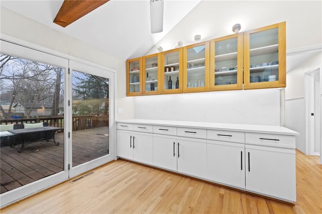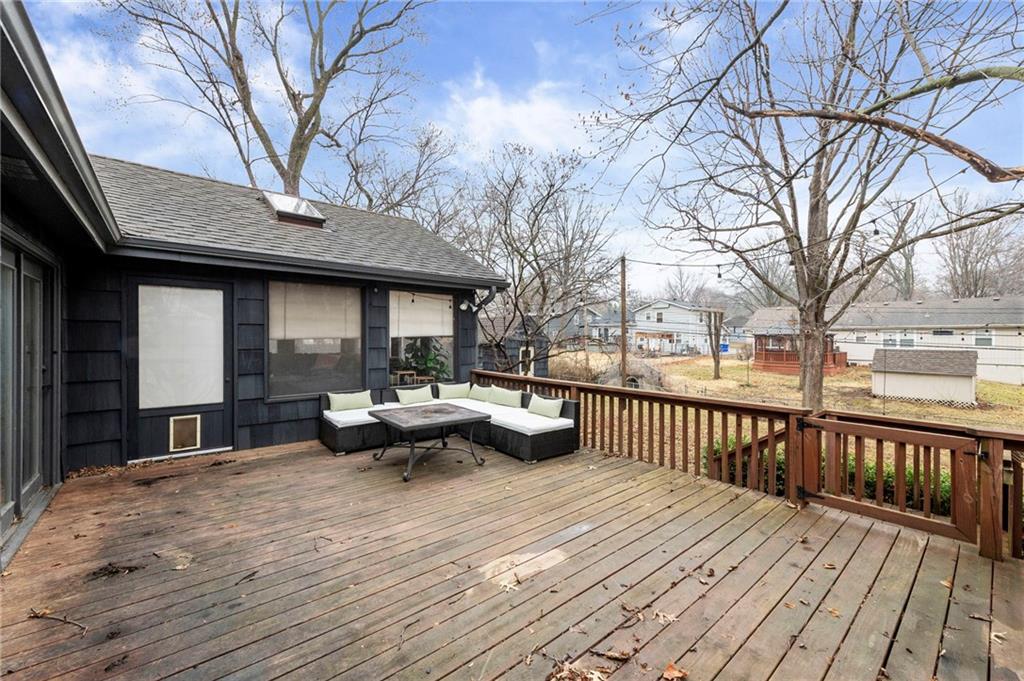 Remodeled Kitchen. Private Backyard. Finished Walk-Up Basement. Move-In Ready in Overland Park! Welcome to this beautifully updated ranch in the heart of Overland Park — where charm, natural light, and smart updates come together. From the curb, you’ll notice the classic brick and cedar shake siding on a quiet, tree-lined street. Step inside and the difference is immediate. Updated Where It Matters Most -Remodeled kitchen with brand new countertops and freshly updated cabinet colors -Updated hall bathroom with new countertops and modernized cabinetry -Hardwood floors throughout -Tasteful, neutral color palette The vaulted kitchen offers incredible storage and flows seamlessly into one of the home’s standout features… Incredible 3-Season Room Soaring ceilings. Massive wood beams. Walls of windows. Real wood floors. This light-filled space feels like a retreat and opens directly to the backyard — perfect for entertaining year-round. Backyard Built for Hosting -Newer deck with space for dining + grill -Fully fenced yard -Storage shed -Private setting Flexible Living Space -3 bedrooms on the main level -Primary suite with en-suite bath -Finished walk-out/walk-up basement -3rd living area (movie room, playroom, gym — your choice!) -4th bedroom ideal for guests or home office -Finished laundry area + abundant storage Extra Features Buyers Love -Oversized 2-car garage -Nest thermostat (control from your phone) -Google Fiber -Tons of natural light throughout If you’re looking for a home that offers updates, character, usable square footage, and a great backyard setup — this one checks the boxes. Homes with this combination of remodel, layout, and outdoor space don’t last. Schedule your showing before someone else calls it home.