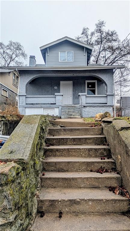 Featuring a classic covered porch with distinctive architectural archways, this property boasts incredible potential! Inside, a cozy fireplace anchors the living space, while the large unfinished basement adds massive value-add potential or expansive storage for tenants. With its historic character and solid layout, this property is perfectly positioned for a fix-and-flip or as a strong, cash-flowing rental addition. Don't miss out on this fantastic opportunity in the heart of Kansas City!