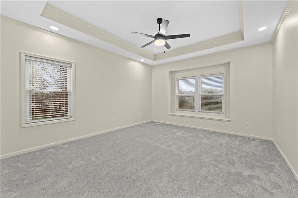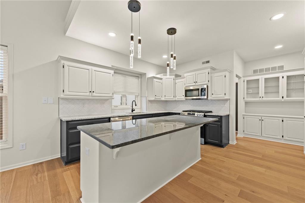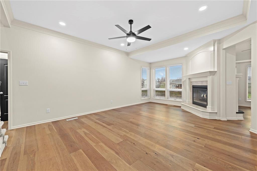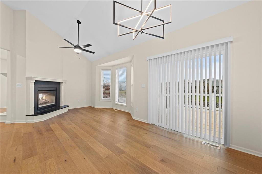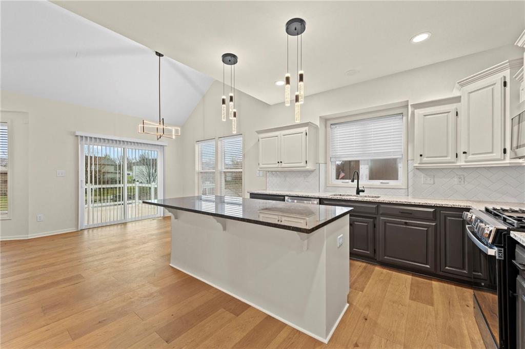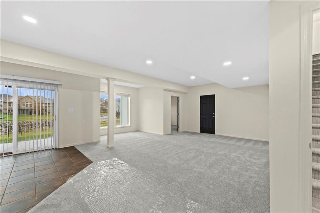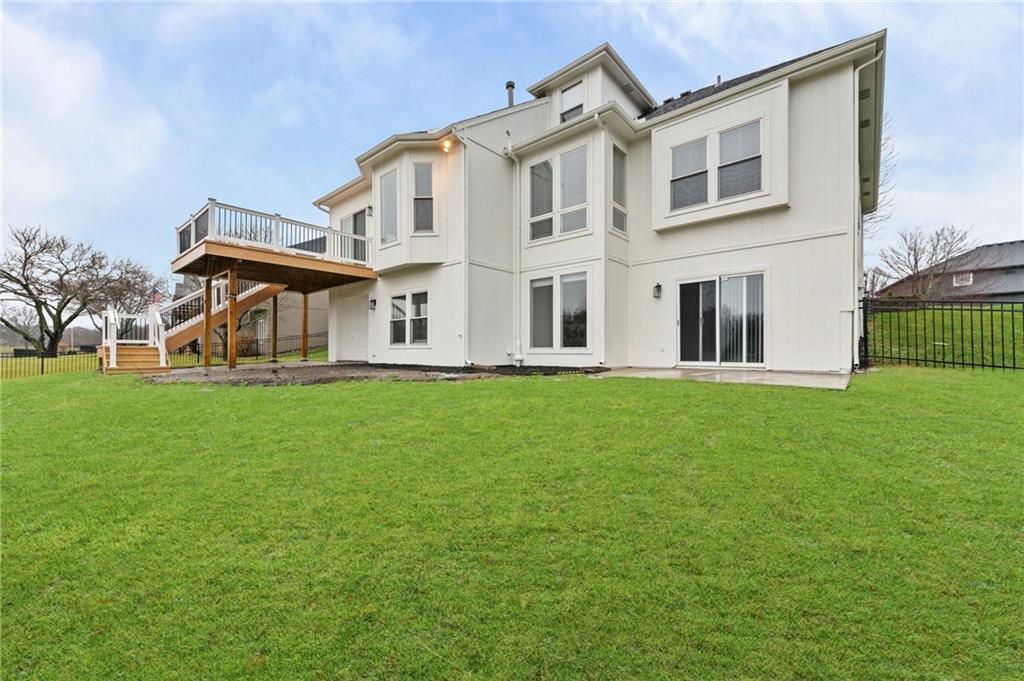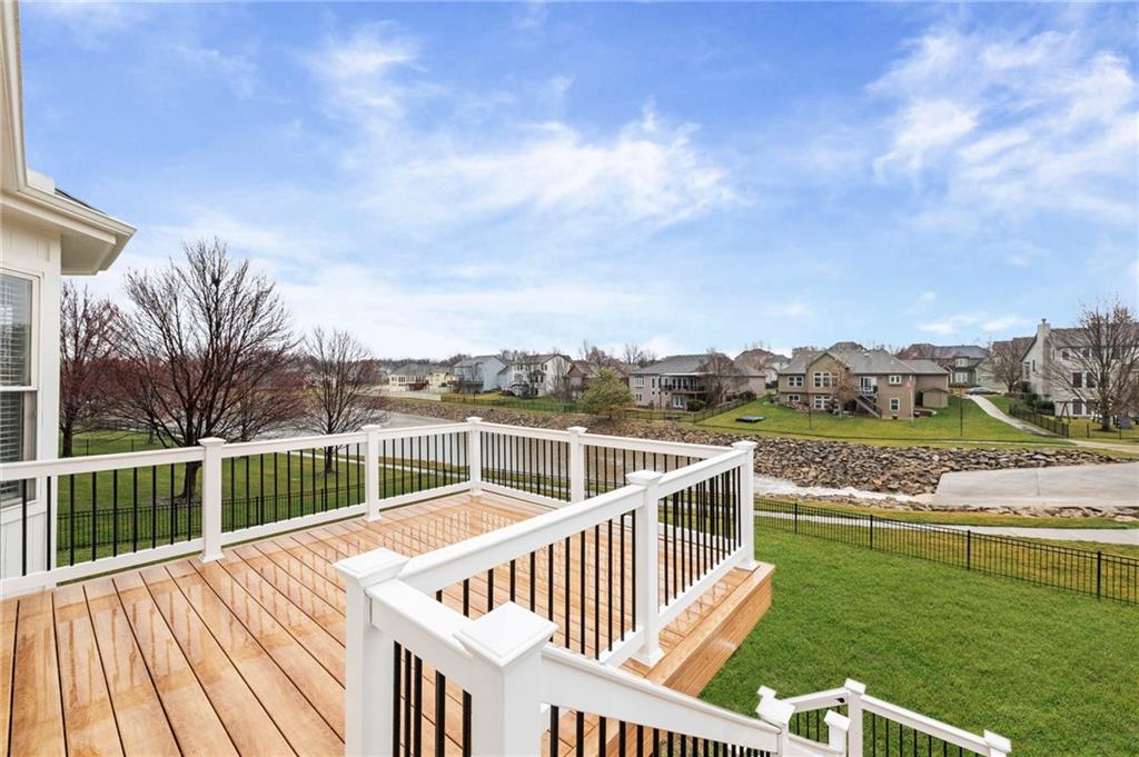 Charming updated 1.5 Story in desirable Monarch View! This home has been beautifully refreshed with modern upgrades including wide-plank wood floors, fresh neutral paint, new carpet, custom trim work, soaring ceilings, and abundant natural light from large windows. Formal Dining Room off the grand entry which flows into a spacious Great Room with high ceilings and a cozy fireplace, opening seamlessly to the Hearth Room, Breakfast Room & gourmet Kitchen featuring a large center island with granite counters, stainless appliances & custom cabinetry. Main-level primary suite includes a luxurious spa-like bath with dual vanities, soaking tub, oversized shower, and walk-in closet. Upstairs offers generous secondary bedrooms (the 2nd bedroom boasts an en-suite) plus bonus/flex space. Finished lower level walk-out adds a Family Room with wet bar, full bath, 5th bedroom and endless entertaining potential plus work shop and utility garage. Enjoy outdoor living on the deck/covered patio with serene pond views. Fully fenced backyard. 3-car garage with epoxied floor. Community amenities include walking trails around ponds & pool. Easy access to Lee's Summit shopping, dining, and schools. Move-in ready—feels like new with established neighborhood perks! Buyer & Buyer's Agent to verify all information including square footage, zoning, taxes & room sizes during the Inspection Period. Agent/Owner