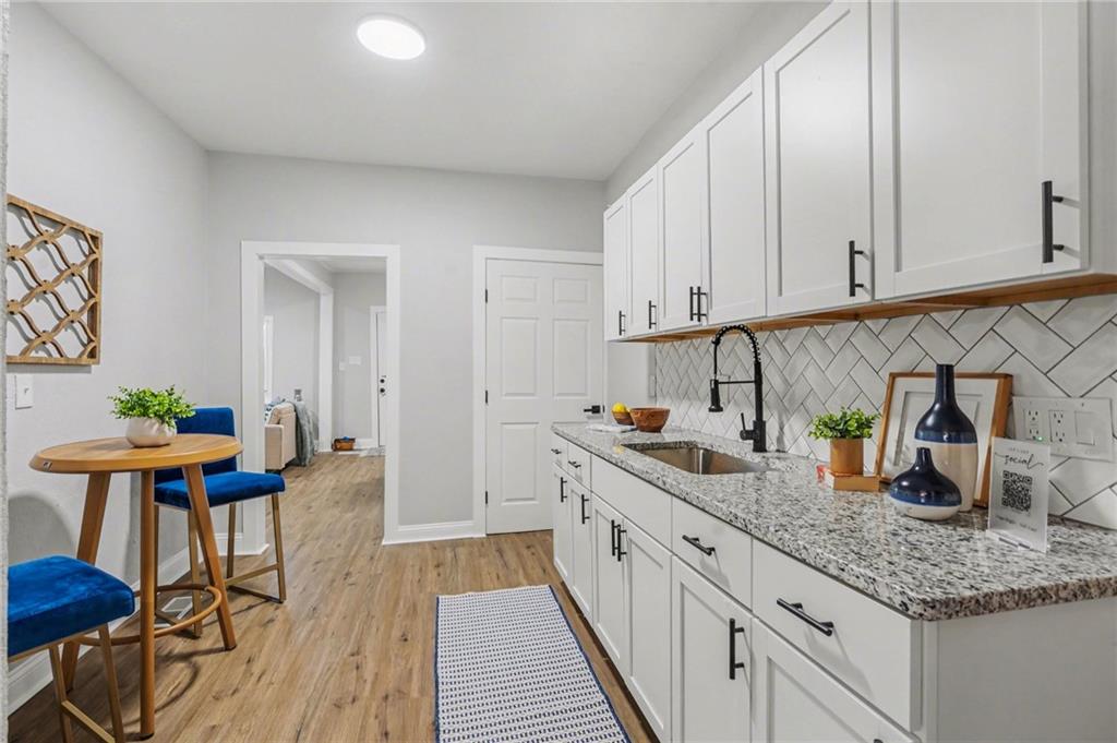 Welcome to 722 — a beautifully reimagined Victorian-style home where historic charm meets modern luxury. This fully renovated 3-bedroom, 1.5-bath gem has been taken down to the studs and rebuilt with thoughtful craftsmanship throughout, including a brand new roof. Step inside to a bright, open living area bathed in natural light, featuring luxury vinyl plank flooring, fresh neutral tones, and designer touches at every turn. The stunning chef's kitchen boasts white shaker cabinetry, granite countertops, herringbone tile backsplash, a matte black spring-neck faucet, and stainless steel appliances — a true showstopper. The spa-inspired full bath impresses with floor-to-ceiling marble tile, a soaking tub, dramatic rainfall shower head, and sleek matte black fixtures. A convenient half bath adds everyday functionality. Upstairs, three generously sized bedrooms offer plush new carpet and ample natural light. The unfinished basement provides incredible storage or future finishing potential. Outside, enjoy a freshly landscaped exterior with charming curb appeal, a detached garage, and additional storage shed — plenty of space for all your needs.