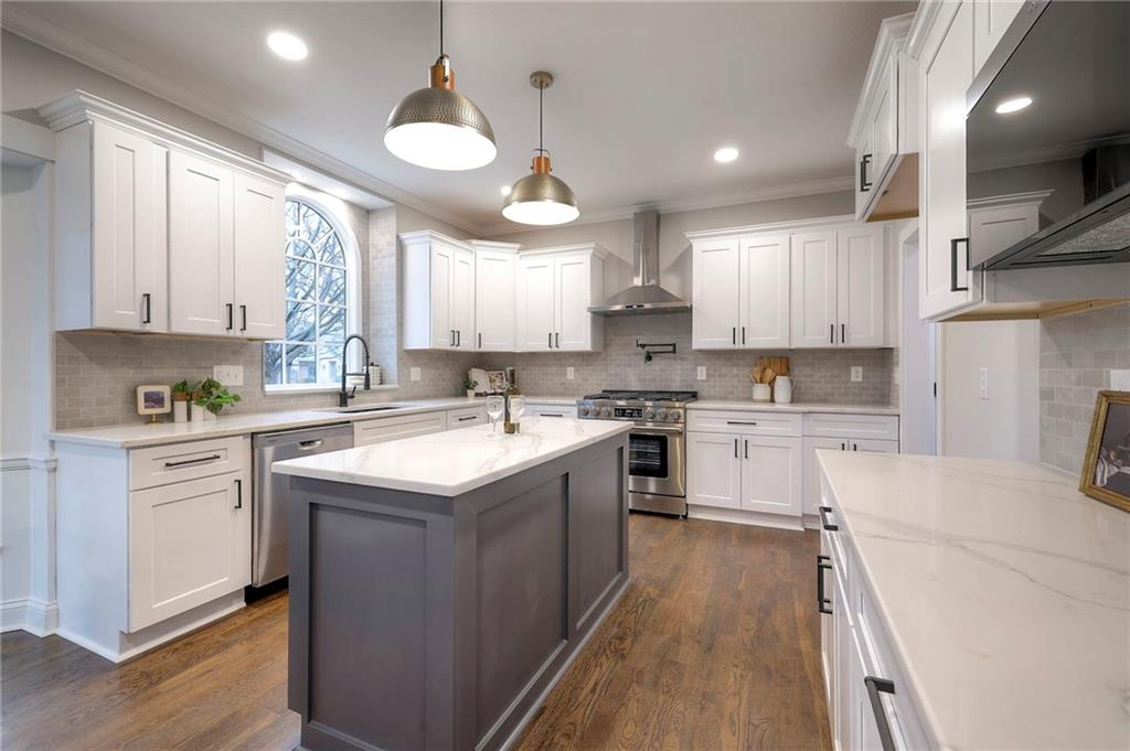 Prepare to say WOW! This stunning, professional remodel sits on an A+ LOT, in an A+ LOCATION, and offers the feel of a brand new home at an affordable price. SO many new features include beautiful white oak hardwood flooring, deliberate open concept design with preserved traditional charm, custom carpentry and craftsman details throughout, new kitchen cabinetry and quartz countertops, large butler's pantry and mud room combo, HUGE primary bedroom suite with accompanying walk in closet and spa-like bathroom, laundry room off the primary bedroom, LARGE 2nd floor loft-style living room, big finished basement with wet bar, full bathroom and bedroom, all new interior and exterior paint, and SO MUCH MORE! Totally move-in-ready with newer HVAC, all new fixtures and hardware, all new appliances. Lovely curb appeal with timeless architecture, including a thoroughly beautiful brick exterior in great condition overall. The spacious three car garage with extra stairs to the basement provides an excellent bonus. So many unique features and custom details make this classic style home feel like new! Renovations were properly permitted by the wonderful City of Leawood, and the professional attention to detail and overall quality of work is outstanding. This home is fresh as can be and truly a MUST SEE!