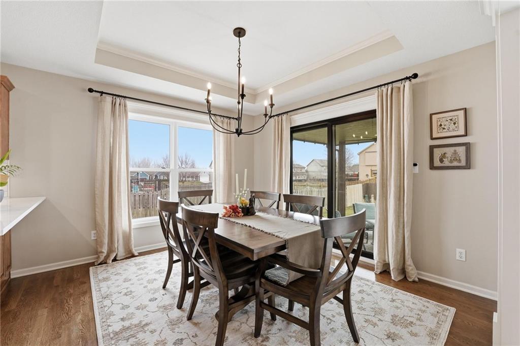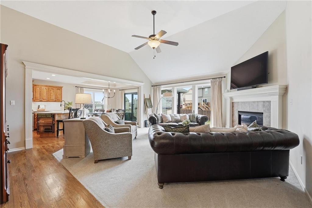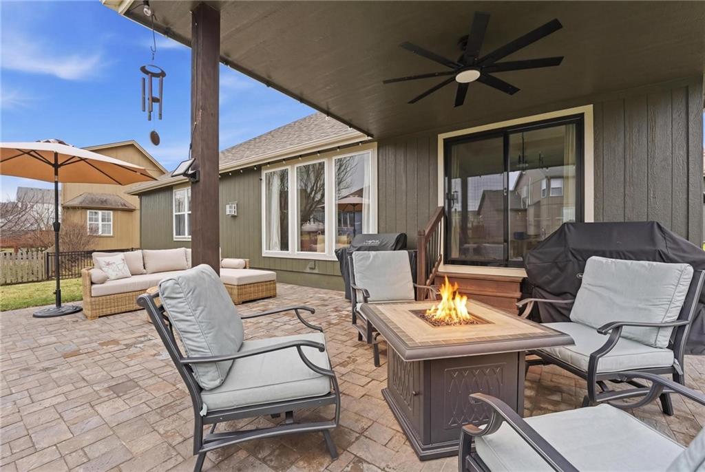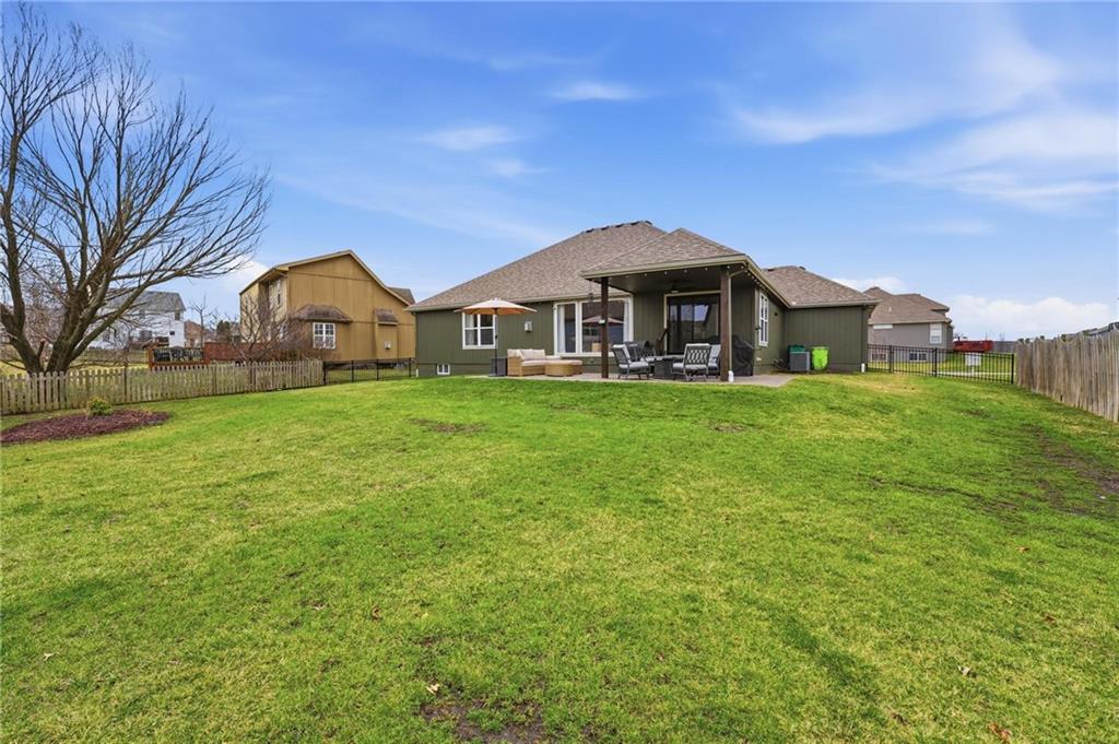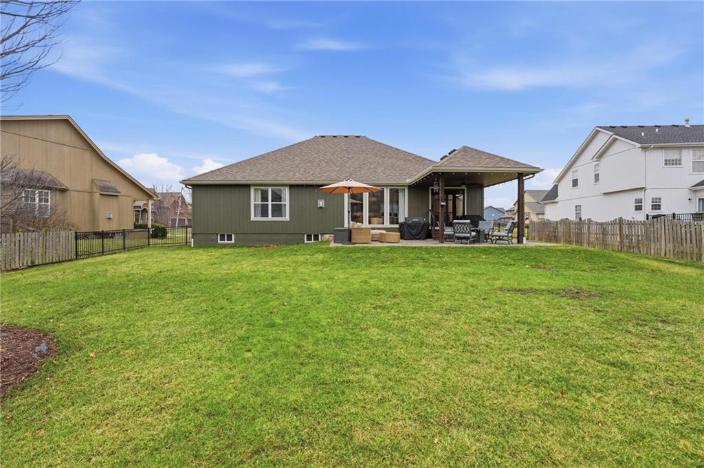 Picture-perfect and truly move-in ready, this impeccable 3-bedroom ranch delivers effortless main-level living with thoughtful upgrades throughout. An open floor plan, gorgeous hardwood floors, and brand-new carpet create a warm, welcoming feel from the moment you step inside. The stunning updated kitchen is the heart of the home, featuring quartz countertops, a stylish tiled backsplash, stainless steel appliances, and a gas convection range — ideal for both everyday living and entertaining. Primary bedroom features ensuite bath with double vanity, shower, tub, walk in closet and tiled floors. The full unfinished basement, already stubbed for a full bath, offers incredible potential for future expansion — whether you envision additional living space, a home gym, media room, or private guest suite. Step outside to the fenced yard with covered paver stone patio, the perfect setting for morning coffee, summer grilling, or relaxing evenings under the lights. With over $85,000 in recent upgrades — including a 40-year roof, tankless water heater, exterior paint, irrigation system, new exterior doors, updated appliances, and more — this home offers peace of mind along with polished style. Located within the award winning Lee's Summit School District.