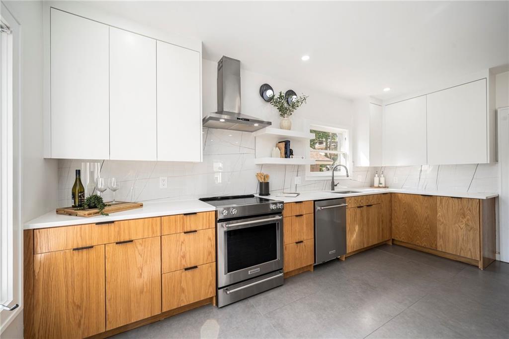 Follow your dreams to one of the most beloved streets in Westwood, where this classic home has been given a stunning modern refresh! Beyond the front porch and inside you'll be met with restored hardwoods that lead the way through an easy, open flow connecting the living, dining, and kitchen spaces. Looking for a cozy corner to sneak away? French doors open to a charming alcove den - perfect for a home office, reading retreat, or whatever your lifestyle calls for. And the kitchen? Heart throbber! Oversized porcelain tile, custom white oak cabinetry, gleaming quartz countertops, and newer appliances set the stage for a space that’s equal parts stylish and functional. The freestanding Caesarstone island anchors it all - ideal for morning coffee or evening cocktails. The fun continues out back! A massive newly stained deck (over 600 square feet!) creates the ultimate outdoor hangout for grilling, relaxing, and hosting friends. The front and back yard was freshly sodded last October, so the outdoor space feels just as new as the inside. Upstairs delivers comfort and convenience with laundry, two secondary bedrooms, a beautifully updated guest bath, and a thoughtfully reimagined owner’s suite. The primary retreat has been redesigned to maximize space and flow, complete with a walk-in closet and spa-inspired en suite. Dual vanities, skylights, a freestanding soaking tub, and a stunning Porcelanosa Spanish tile shower with a lava rock floor makes this bathroom ELITE! And yes — there’s more. The finished basement is a rare bonus in this area, offering a conforming bedroom, full bath, and additional living space perfect for guests, movie nights, or a quiet escape. The 2 car garage connects with a bump out storage area. Location? HARD to beat. Just a short stroll to the Westwood Hills shops and Country Club District. Come grab this experience and lifestyle upgrade!