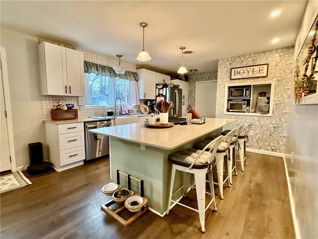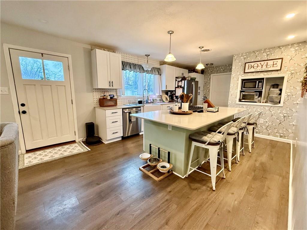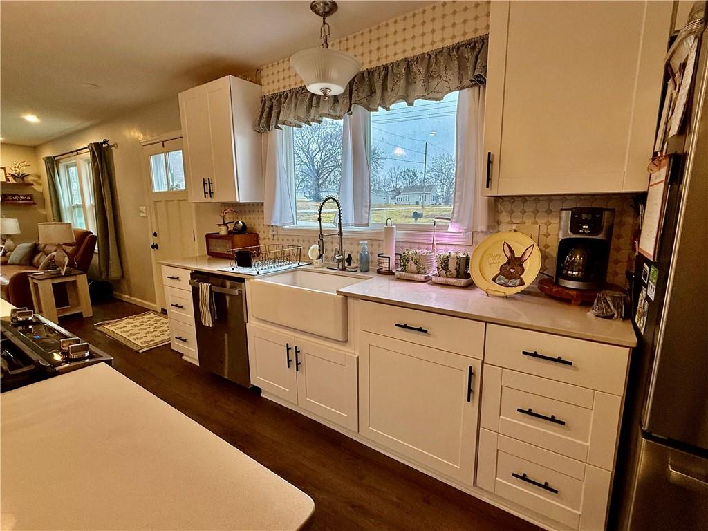 Pride in ownership shows in this well cared for home. Total remodel 4 years ago. Nice open floor plan with huge island sits on large lot located on the south side of town making an easy commute to KC. Nice enclosed porch and concrete patio for those fun summer gatherings that are just around the corner! Long drive for plenty of parking. This is a must see!