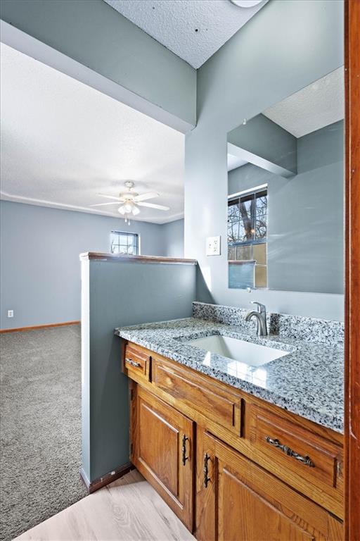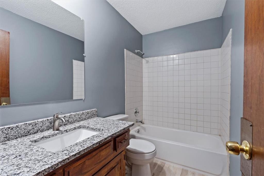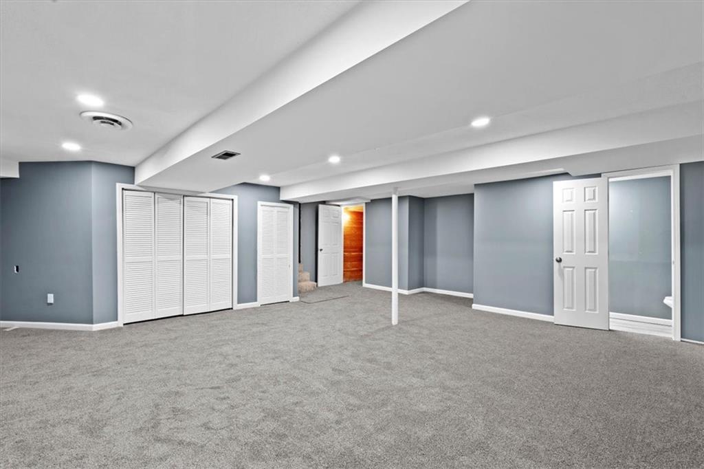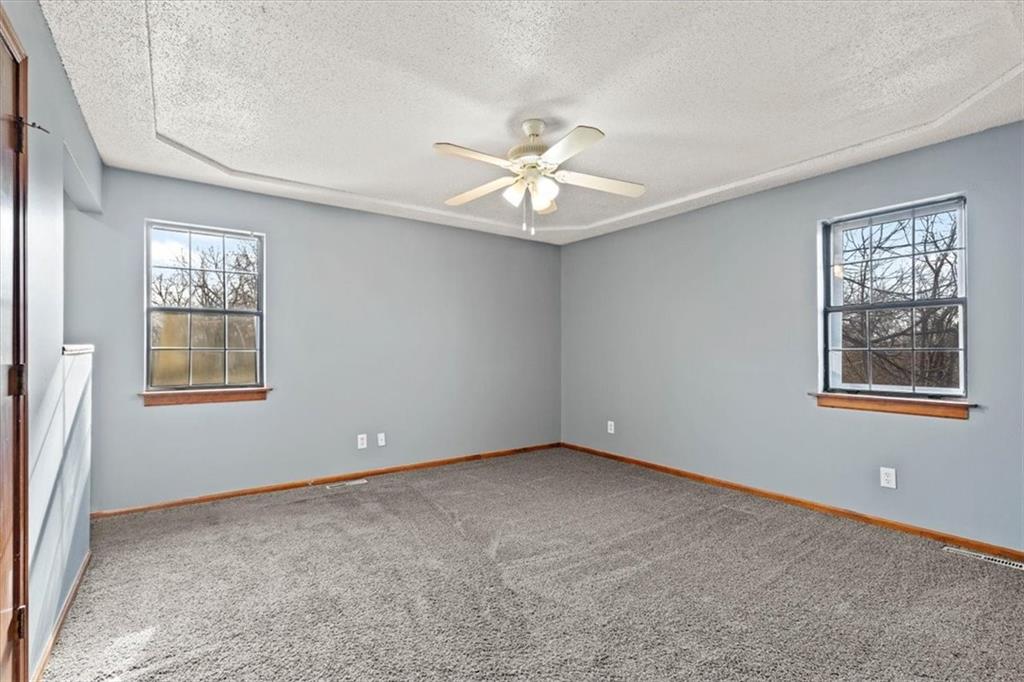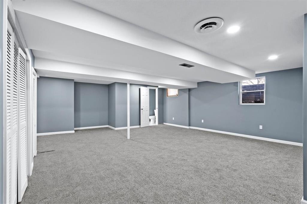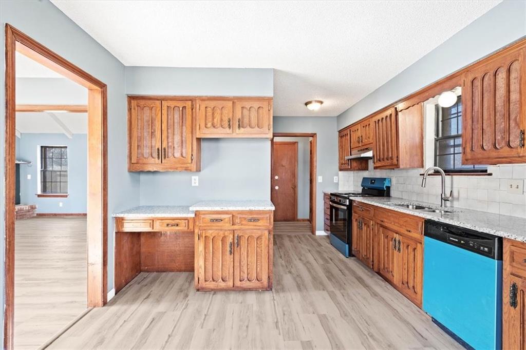 Fully updated and move-in ready, this Raytown side-split checks a lot of boxes, including one you rarely see at this price point: nearly half an acre of land. The oversized lot stretches well behind the home, giving you room to garden, play, entertain, or just breathe. Inside, the updates are everywhere. Brand new roof and gutters (2026), fresh interior and exterior paint, and new luxury vinyl plank flooring flows through the main living areas, kitchen, and entryway. The living room makes an impression with its vaulted, beamed ceiling, floor-to-ceiling brick fireplace, and a sliding glass door that opens to the back patio. The kitchen is spacious and functional, featuring solid oak cabinetry with real character, new granite countertops, updated fixtures, and plenty of room for a full dining setup. The primary suite includes a walk-in closet and a private vanity area with granite counters and its own separate shower. The finished basement is the real bonus, fully drywalled with new carpet, recessed lighting, a wood-burning stove on a brick surround, and a brand new half bath. An egress window makes it legally conforming as a fourth bedroom, and a cedar-lined closet adds serious storage. Out back, a concrete patio with a fire pit sits just off the living room, and then the yard just keeps going. Mature trees, room to expand, and privacy that's genuinely rare for this area.
