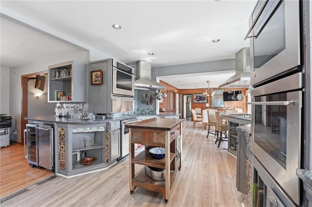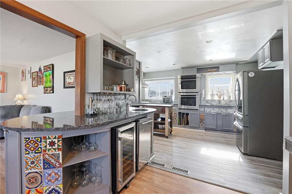 The ultimate culinary compound – A chef’s dream! Rarely does a home hit the market that is so perfectly engineered for the art of the "Host." Situated on a premium corner cul-de-sac lot, this 3,000+ sq. ft., 5-bedroom, 2.2-bathroom residence is a masterclass in entertainment. The heart of the home features a uniquely customized chef’s kitchen with dual cooking stations, gleaming granite, and a layout designed for high-capacity meal prep without sacrificing style. Finished in 2022, the walkout basement is a showstopper. Featuring a second full professional kitchen, a massive wrap-around granite bar, and industrial-grade appliances, it’s the ultimate venue for game days, holiday catering, or a sophisticated guest suite. Brick fireplace on main level and in basement. Step outside to your private "staycation" retreat. A new Trex deck leads to an expansive patio and a custom heavy-duty pavilion. This outdoor culinary station is a true rarity, featuring a pizza oven and professional grilling suite. All the heavy lifting is done! Enjoy a newer semi-circle driveway, newer roof, new HVAC, newer windows, and a new tankless water heater. All bathrooms remodeled. This home is ready for its next great event. All appliances are negotiable—bring your recipes and move right in! Don't miss the interior drone video and 3D virtual walk-through!