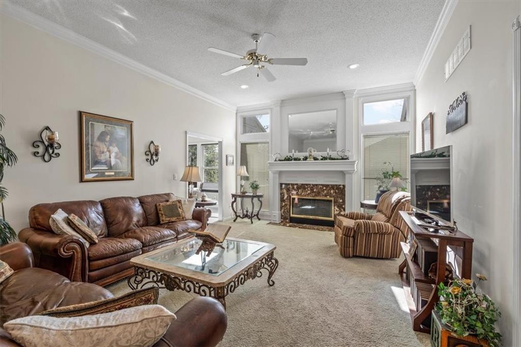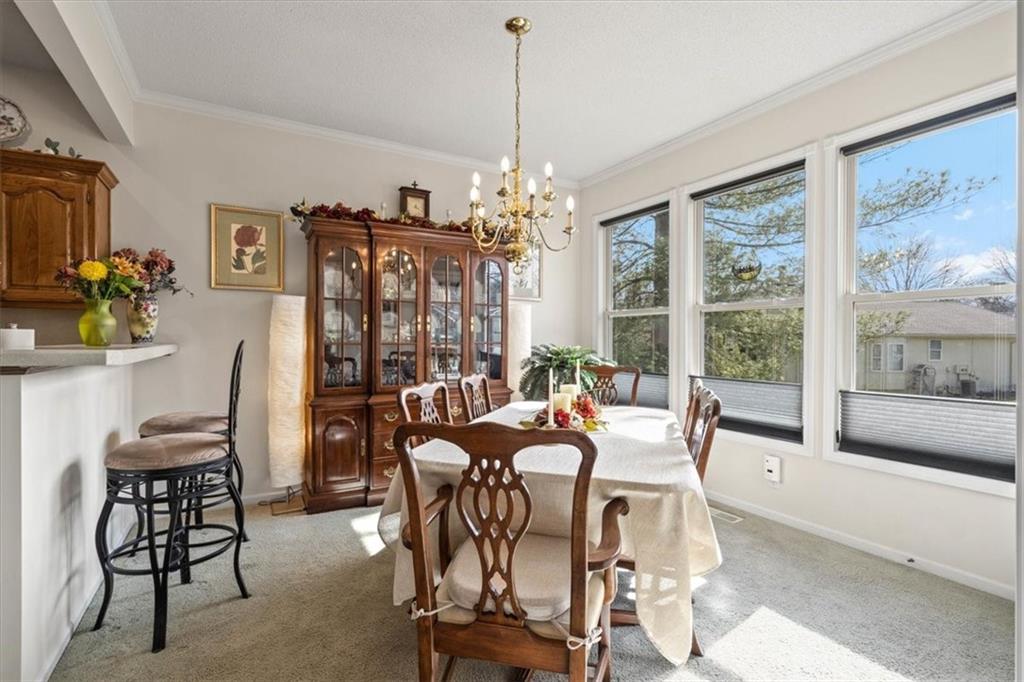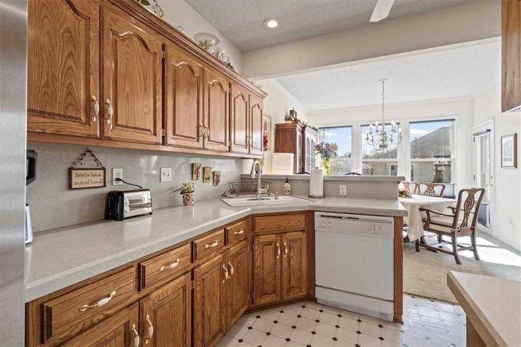 This beautifully maintained ranch in Whispering Meadows offers low maintenance living with convenience to restaurants, shopping, Waterfall Park, and much more! The inviting open floor plan includes a comfortable living room with vaulted ceilings and a gas fireplace as well as the well-appointed kitchen with granite counters and backsplash, custom stained cabinets, and a dining area. The home has 2 large bedrooms which includes the primary bedroom complete with en suite bathroom, walk-in closet, and charming window seat. The unfinished basement provides limitless opportunities from storage to a rec space and more. Whispering Meadows offers a true community environment with a clubhouse, newly renovated pool, and walking trails, plus a packed social calendar with events for a variety of interests, perfect for getting to know your new neighbors!