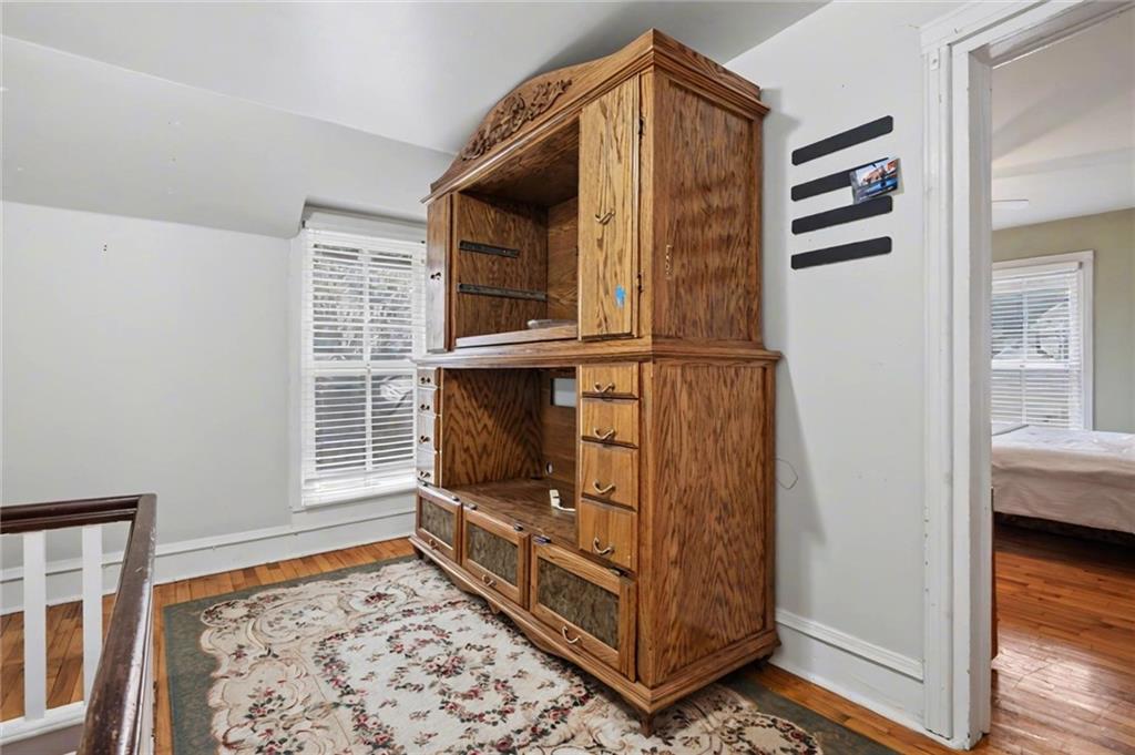 Step into this charming 1900's-built home with timeless character and thoughtful updates, including 4 spacious bedrooms and 2 bathrooms, located on a large corner lot. This home features original hardwood flooring and interior doors, along with beautiful trim details, tall ceilings, and large windows allowing for natural light throughout. The primary bedroom, full bath, and laundry/mud room are conveniently located on the main level, with an additional 3 spacious bedrooms and full bath, complete with beautiful claw foot tub, on the 2nd level. The kitchen has ample cabinets, gas range, some stainless-steel appliances, kitchen island, a detailed opening with bar stools and views into the dining room, perfect for entertaining. The large dining room has a beautiful bay window complete with cozy seating overlooking the backyard retreat. The large laundry/mud room with built-in ironing board, has additional cabinetry, space for a possible pantry, and an area perfect for crafting or a home office. Enjoy relaxing on the covered front porch sipping your morning coffee, or entertaining in the large backyard surrounded by a privacy fence, mature trees, the sounds of nature, and with space perfect for play, gardening, or outdoor gatherings. Let’s not forget the large shed for hobbies or storage, and the side carport for covered parking and additional outdoor storage. Located with easy access to Hwy 59 and Hwy 56 allowing for a short commute to Lawrence, Ottawa, KC and surrounding. AC 2 years old/Furnace approx 6 years old. PRICED under county appraised value, this adorable home is move-in ready and the perfect opportunity to bring your own personal touches.