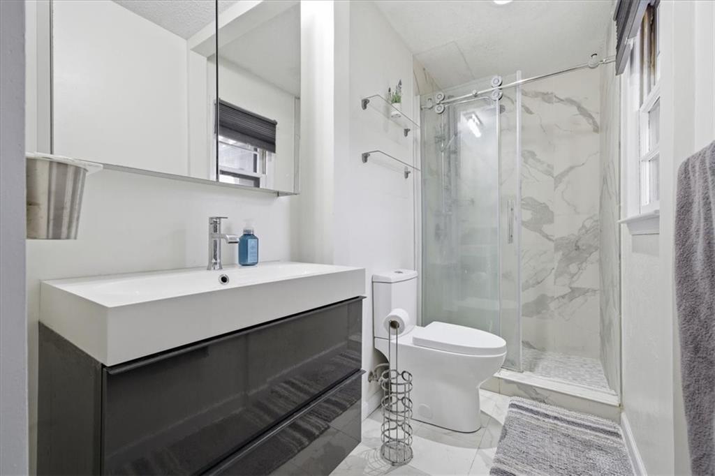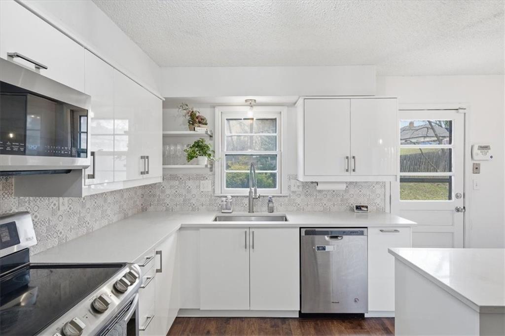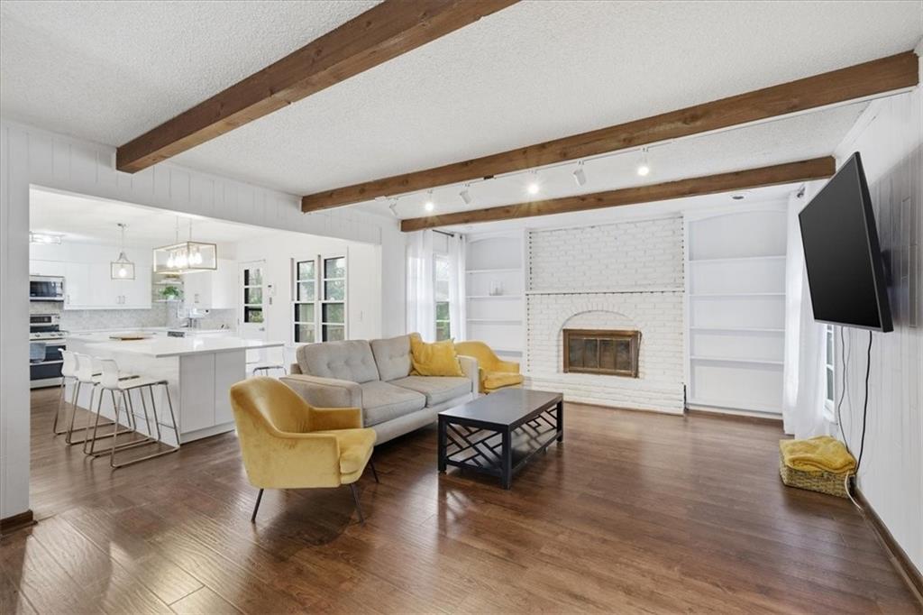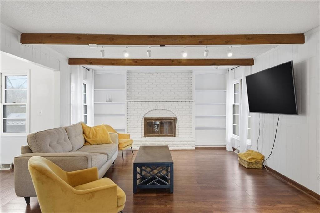 This location can’t be beat and neither can this beautifully curated 1.5 story home that delivers space, style, and substance at every turn. The classic brick exterior and brand new roof set the tone from the curb. Step inside to a freshly painted living room where warm wood floors, exposed ceiling beams, and a whitewashed brick fireplace create an instantly welcoming atmosphere. Off the entry, a versatile sitting room flows into the formal dining room — ready to become a home office, reading room, or elegant entertaining space. The star of the show is the fully remodeled kitchen, featuring an insanely large quartz island, gleaming newer appliances, a generous walk-in pantry, and a door opening to a fenced yard with two private decks, perfect for entertaining or quiet evenings outdoors. The main floor offers two spacious bedrooms, a beautifully updated full bathroom, and a primary suite with its own updated en-suite bath and two closets. Upstairs, a charming loft-style bedroom serves as the perfect retreat. The finished lower level adds a 5th non-conforming bedroom, a brand new third full bathroom, abundant storage, and direct access to the two-car garage. Classic charm meets modern finishes — this one is move-in ready and truly has it all.