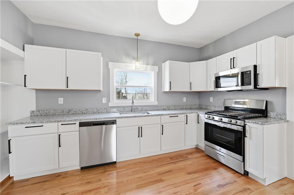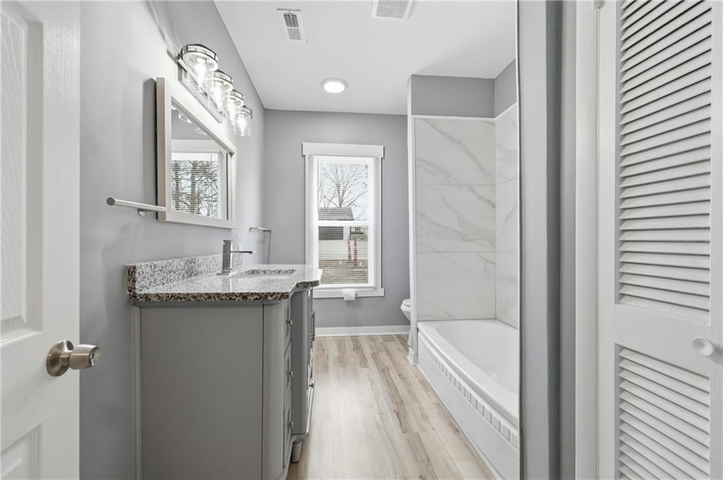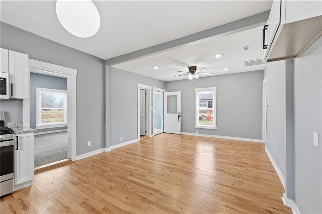 Fully renovated and move-in ready, this charming 3-bedroom, 2-bath home offers the perfect blend of modern updates and functional living space. The open-concept layout features beautiful hardwood floors flowing through the kitchen and living room, creating a warm and inviting atmosphere ideal for both everyday living and entertaining. Enjoy relaxing mornings on the welcoming front porch or unwind in the backyard beneath the stylish pergola. The property also includes a massive 30x23 detached garage/outbuilding—perfect for vehicles, a workshop, storage, or hobby space. Situated on three total lots, this property offers exceptional space and flexibility. The rear lot carries its own legal description and has the potential to be sold separately, providing a unique investment or future development opportunity. A rare find with updates, space, and added value—don’t miss this one!