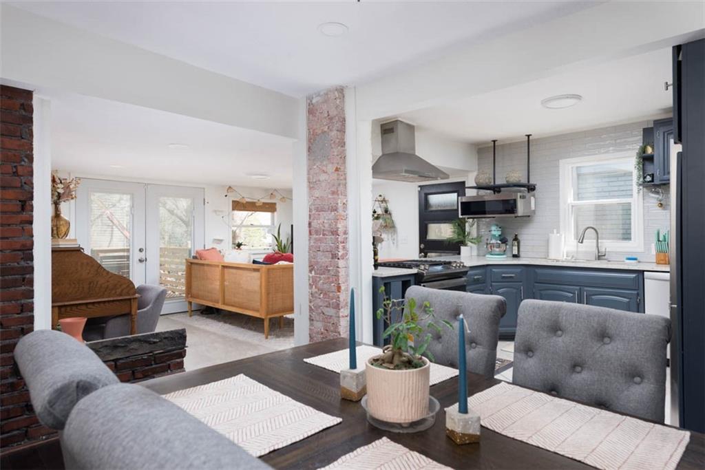 Set behind a charming brick-accented front porch that invites you to slow down and stay awhile, this 2-Story home welcomes you with warmth, luxury updates and finishes, and timeless character! Step inside to rich flooring that anchors the main level while natural light pours through the windows, creating a bright yet cozy living space that feels both elevated and comfortable. The layout unfolds with intention, offering defined spaces that still feel connected, perfect for everyday living and effortless hosting. The kitchen brings both style and function to the forefront, featuring sleek Quartz countertops, stainless steel appliances, beautifully finished cabinetry, and breakfast bar seating. The family room sits just beyond, outlined by windows, access to the back deck, and a full bath packed with personality. The primary bedroom stands out with a striking accent wall and a calming, well-proportioned layout, magazine worthy ensuite with high-end fixtures and rainfall shower. Each additional bedroom carries its own charm, offering flexibility for guests, work-from-home needs, or personal retreats, and private upper deck access. The guest full bathroom has been thoughtfully refreshed with clean finishes and a modern feel that complements the home’s character. Step outside and discover multiple layers of outdoor living designed to be enjoyed. An elevated deck creates a private setting for dining or relaxing, while the lower patio and yard offer additional space to gather, garden, or unwind. With inviting spaces inside and out, this home delivers comfort, style, and a setting that feels easy to love from day one. All of this sits just minutes from Union Station, Crown Center, Downtown, and some of Kansas City’s best dining and entertainment, offering not just a home, but a lifestyle that’s connected, vibrant, and easy to enjoy.
