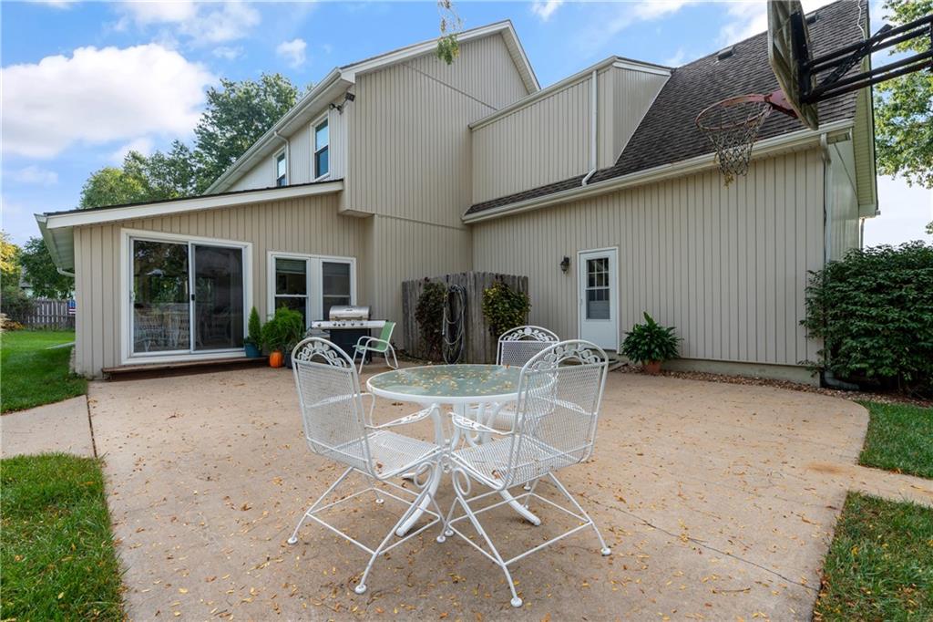 Tucked away in the desirable Harmony South neighborhood, this classic Colonial-style home offers a rare blend of space, comfort, and a peaceful one-acre setting. The main floor features a traditional layout with a formal dining room and a dedicated home office with built-ins just off the entry. The living room is warm and inviting with a bay window, brick fireplace, and custom built-ins, creating a perfect place to gather. The kitchen is designed with functionality in mind, offering abundant cabinetry, generous counter space, and granite countertops for everyday living and entertaining. Upstairs, the primary suite provides a private retreat with tray ceilings, a separate sitting area, and an ensuite bath complete with double vanities, vaulted ceilings, a soaking tub, separate shower, and skylight. Additional bedrooms are comfortably sized and offer flexibility for family or guests. The finished basement expands the living space and can easily serve as a recreation room, workout area, hobby space, or media room. A standout feature of the home is the bright all-weather porch, surrounded by windows and filled with natural light, making it the perfect spot to relax, watch the seasons change, or enjoy game days. The backyard is truly special, featuring an oversized saltwater pool, mature landscaping, fruit trees, and grapevines that produce annually. A patio extends the outdoor living space, and a convenient shed near the pool provides storage for equipment and supplies. Set in a quiet, established community known for its friendly atmosphere, this home also offers exceptional access to everything South Overland Park has to offer, including parks, shopping, healthcare, highways, and the Arboretum, along with highly regarded schools nearby. This property combines everyday comfort with a private, retreat-like setting in a location that makes daily life easy and enjoyable.