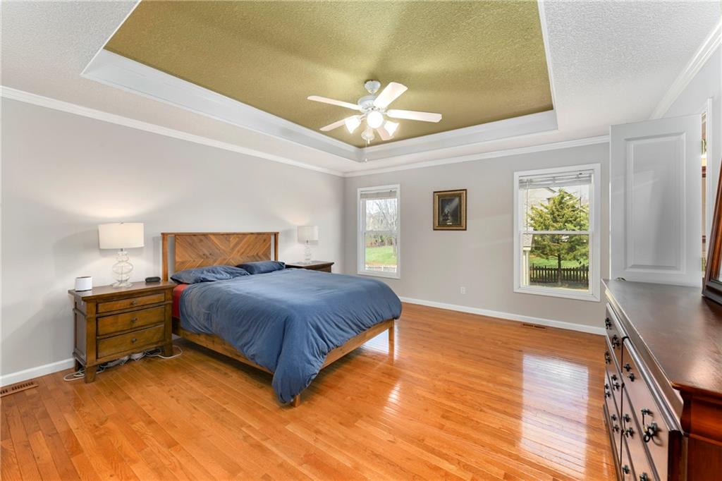 This is a beautiful 4 Bedroom, 3 Bath home in Lansing's only subdivision with a community pool! It's a lot of space for the money and has beautiful wood floors throughout the whole home! You will love the big, open kitchen with lots of cabinets & granite countertops! Large great room, formal dining plus big family room on walk-out lower level! Big, fenced back yard has a deck, patio & shed! Whole house interior was recently painted. Don’t miss your opportunity to see this lovely home in a great location. Neighborhood is across the street from Lansing High School, easy access to Fort Leavenworth and K7.