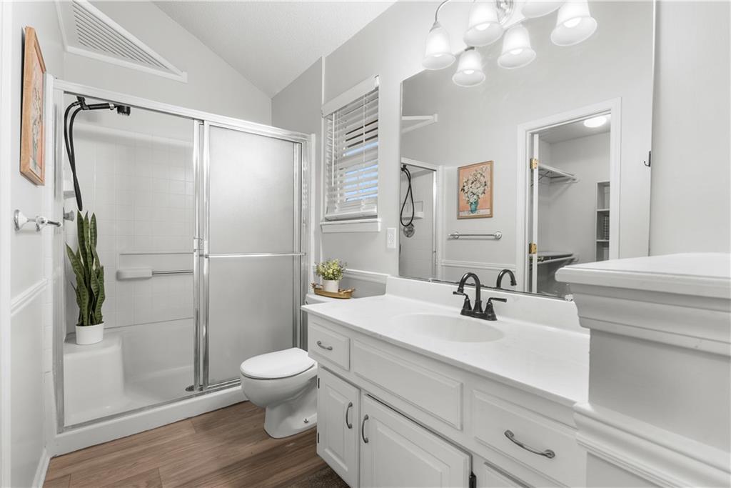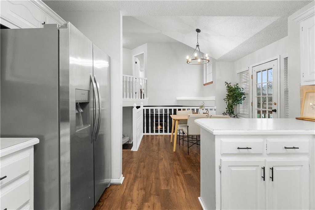 Positioned in a quiet neighborhood, this home showcases a multitude of attractive features. Recent upgrades include new LVP flooring throughout the main level and living areas, new carpeting, all-new fixtures, and a fresh coat of paint. The main floor offers a formal living room and a kitchen/dining combination that overlooks the main living area. Upstairs, the home is complete with a primary suite, laundry room, and two additional bedrooms. The primary suite features vaulted ceilings, a spacious walk-in closet, a large vanity, and a private shower. The living space is complete with a gas starter fireplace and a half bath. The basement offers a fourth nonconforming room for additional bedroom space or office use. A newer deck, located off the kitchen, leads to the private backyard, which includes a small gardening greenhouse. This move-in-ready home provides ample space for entertaining and is ready for its new owner.