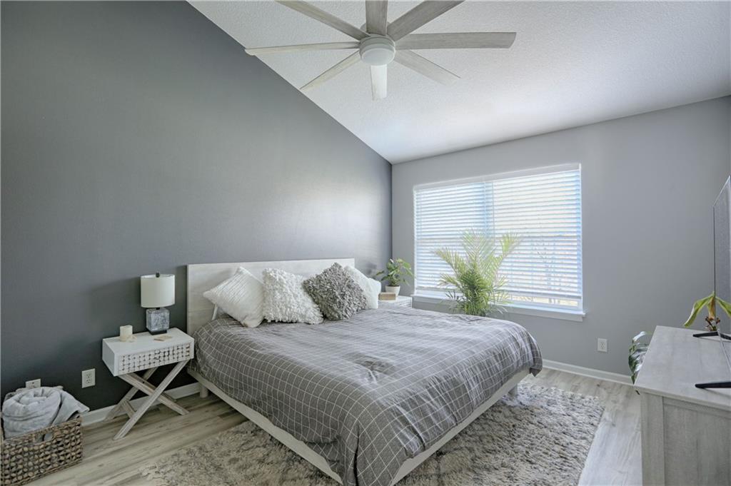 Experience effortless, carefree living in this pristine townhome that features a sleek, modern kitchen with quartz countertops, eating bar, stainless appliances and custom cabinets. The 24 x 12 living room features a welcoming gas fireplace, and offers tons of natural light with 9' ceilings. The vaulted ceiling in the primary bedroom has an oversize, whisper-quiet fan, 8 x 6 walk-in closet, and en-suite bath with tub/shower combo. Additionally, the upper level includes a second bedroom and bathroom as well as the laundry and additional storage. Let's talk about turnkey: Newer HVAC (3 yrs), luxury vinyl plank flooring throughout and fresh paint add to the ease of living in this maintenance provided community that includes water, trash, lawn and snow removal as well as exterior paint AND roof replacement, not to mention the pool and walking trails. This property also includes an Extra Special, Hard to Find feature: Outdoor Privacy. YES, it's true! Enjoy the outdoors on your own 14 x 36 fenced patio area that overlooks trees and expansive green space that can't be beat! No feeling like someone else's home is looking right into yours. All this, plus an attached two-car garage? This townhome is the one you've been looking for! View the 3D virtual tour and schedule an appointment now.