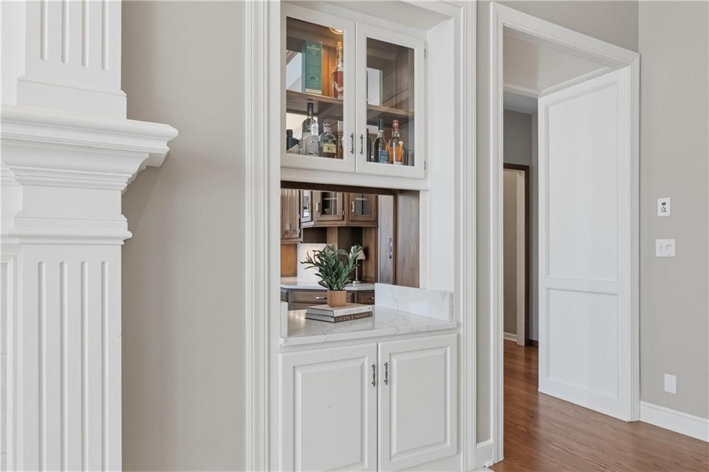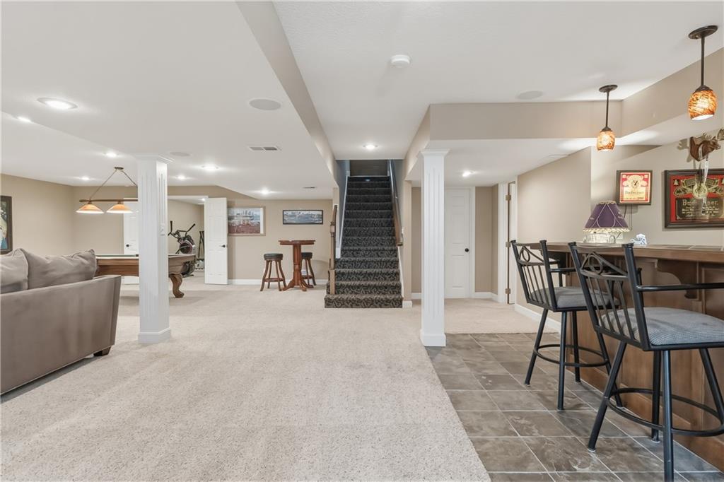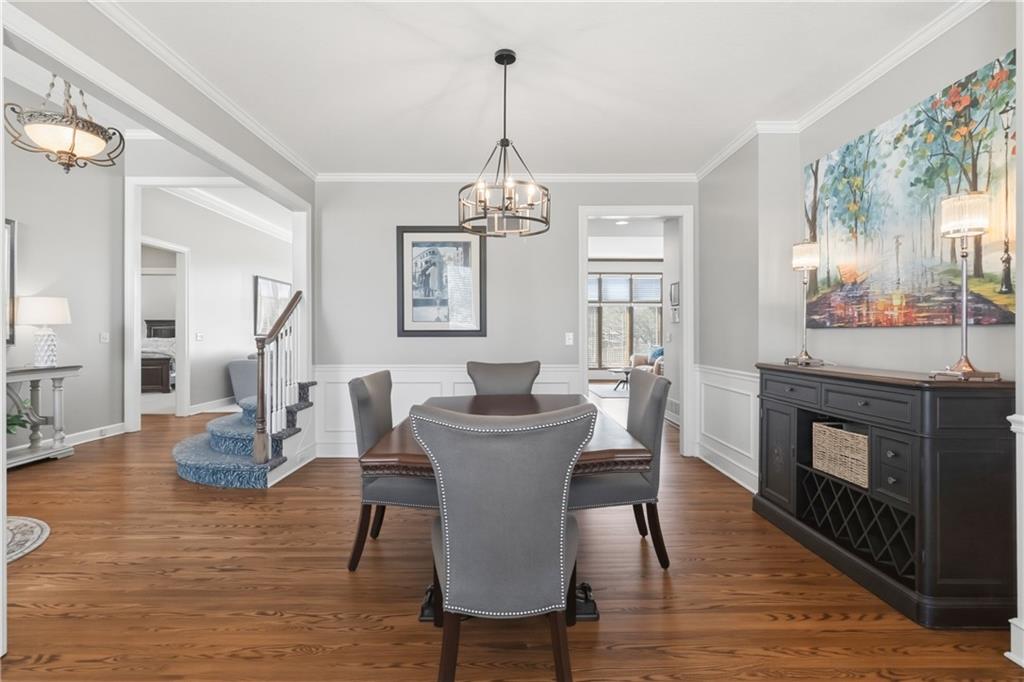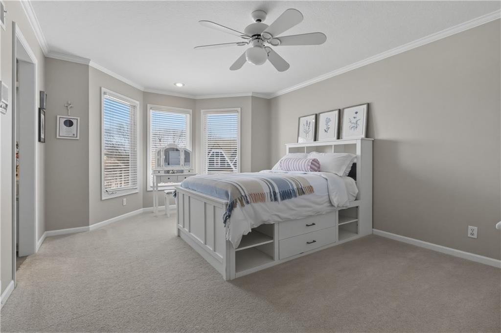Beautiful 1.5 story home situated on a desirable corner lot in a prime Overland Park location and just blocks from Harmony Elementary School and Harmony Middle School in the Blue Valley School District! There is so much to love about this home, but let's start with the spacious main level primary suite, a true dedicated office, formal dining with bay window and wainscotting wall treatment. Everyone is welcome to lounge or entertain in the light filled great room. Function and design delight in this updated kitchen/hearth room combination which is sure to become the hub of the home. Enjoy the spacious loft upstairs with 3 additional bedrooms and updated bathrooms. Play games, watch TV, have a pint or a glass of wine in this finished lower level complete with a full wet bar, wine room, flex room, full bathroom and loads of storage. Wonderful outdoor living space with this gorgeous patio complete with a grill and fireplace. Located just minutes from a variety of shops, restaurants, and everyday conveniences, plus easy access to major highways for a quick commute anywhere in the metro. A wonderful opportunity to enjoy comfort, convenience, and community all in one place!