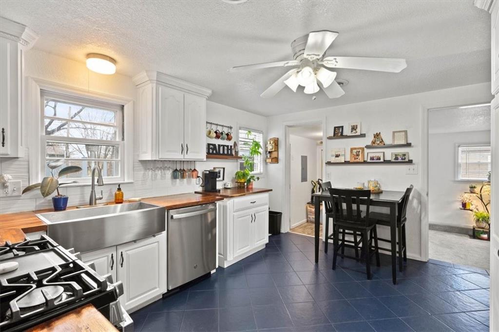 Located in the heart of Overland Park, 6536 Lowell Avenue blends comfort, charm, and everyday convenience in one of Johnson County’s most desirable locations. This home is in an established neighborhood with lots of trees and neighbors walking dogs and pushing strollers. There is a welcoming portico with bench and a double wide driveway for off street parking.The curb appeal really shines when the hydrangeas begin to put on a show in spring. Look up and you’ll notice the new roof and gutters installed in 2024. As you enter the home, you will be greeted with a beautiful accent wall in the living room and real hardwood floors. Natural light fills the living spaces, creating an airy, comfortable vibe your plants will love. The kitchen was updated in 2022 with new stainless steel appliances: gas stove, dishwasher, microwave, refrigerator and sink. There is plenty of cabinet space and a small pantry. The primary bedroom has a walk-in closet and provides a peaceful retreat. There is a second bedroom and a bright full bathroom down the hall. The garage has been previously converted into a large third bedroom with a closet. This space is currently being used as a media room and offers flexibility to fit your lifestyle. The laundry room is right off of the kitchen and leads to the amazing backyard. Step outside and be WOW’d by the huge deck that’s perfect for entertaining, gardening, or unwinding at the end of the day. The backyard is large and completely fenced. This move-in ready home is truly special and ready to be yours!