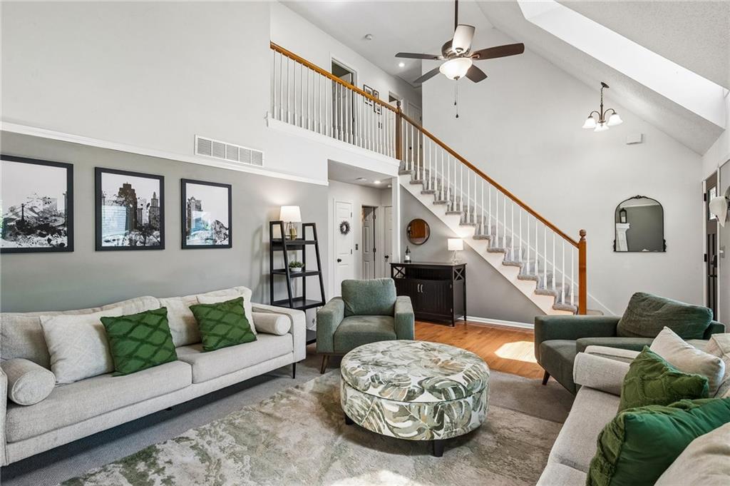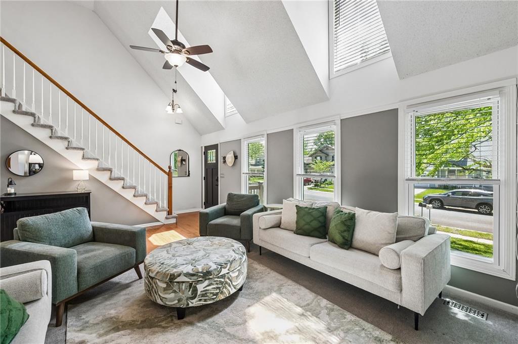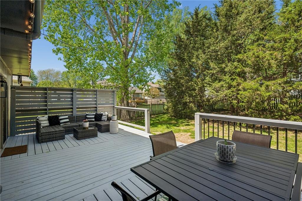 The most charming curb appeal and meticulously maintained 3-bedroom home with 2 full and 2 half baths in the highly coveted Park Hill School District! The light-filled living room offers skylights and a cozy fireplace. Eat-in kitchen features beautiful wood floors, dedicated pantry space, and direct access to backyard. The large deck overlooks fenced backyard with expanded area for seating, dining & entertaining plus your own hot tub that stays! Privacy screen and ambient lighting line the back perimeter to create a warm, cozy atmosphere. Retreat to the primary suite which features cove ceiling and a private ensuite bath w/double vanity and walk-in closet. Two additional bedrooms and full bath on second floor. The finished lower level provides flexibility with a comfortable family room and a non-conforming 4th bedroom or office nook along with additional half bath. Generous unfinished space is perfect for storage. Permanent Govee Lighting on exterior front of home with endless options to celebrate every holiday! Water purifier/softner, Samsung "family hub" wifi kitchen fridge manage your family's calendars, stream music, display artwork also stays! Enjoy everything this home has to offer...A fabulous property in prime location!