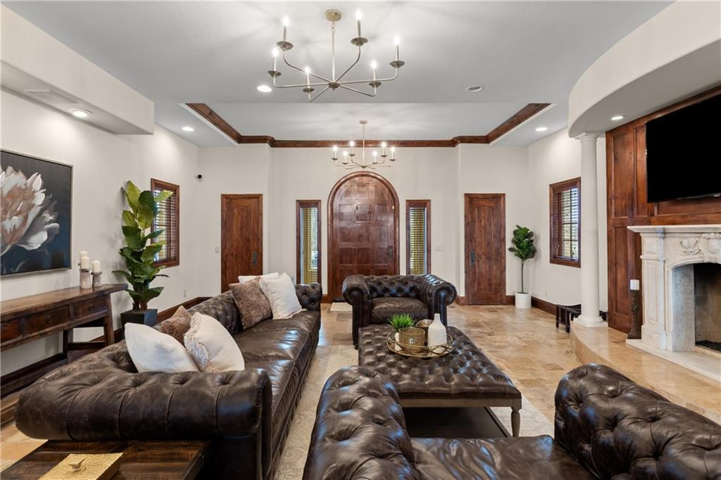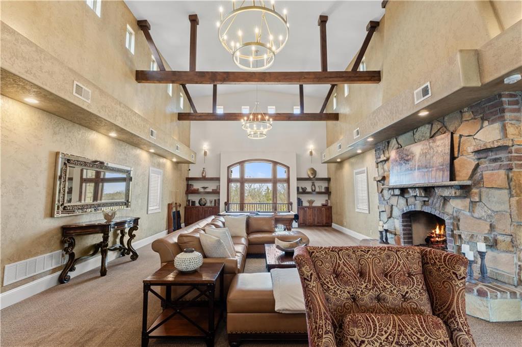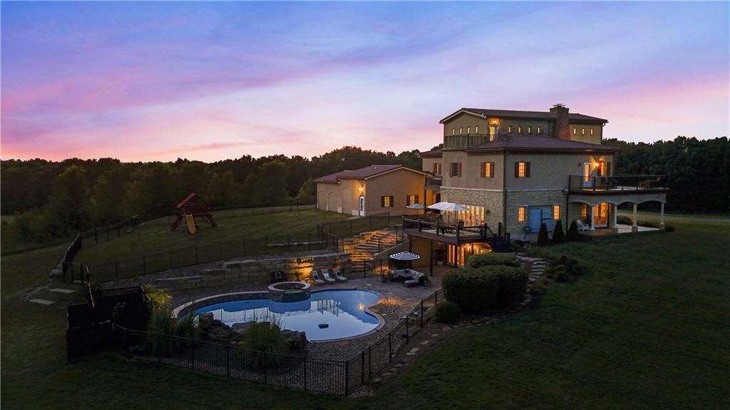 Now is the time to make this amazing opportunity a reality! This 8000+ sqft Mediterranean Masterpiece sits on 26+ acres of secluded land. It is located in Douglas County, Kansas. The pictures pale in comparison to what this luxurious home looks like up close and in person! Priced well under the professionally appraised value, this home is now destined to sell fast. Gated entry to a long winding drive leads you to this beautiful private country estate. It is outside the city yet still close to all the suburban amenities. Truly the best of both worlds. The owner will negotiate leaving the home fully furnished for move in ready buyers looking to transition and close quickly. Elegance is a word that best describes the interior of this home with its expansive rooms, gourmet kitchen, multiple fireplaces and huge living areas on every level of this one of a kind, private estate. It also boasts astonishing outdoor living from the decks to a large patio surrounding an amazing custom pool & hot tub which overlooks your very own private lake, complete with its own island. Wildlife abounds on this property, as you can watch the deer, turkey, fox, any many other species cross the secluded 26+ acre estate. There are wide-open meadows that could be fenced for pasture and other areas of surrounding land that can be mowed to enlarge those open meadows. This already outstanding property could be developed into an incredible Equine Estate. This secluded, sophisticated homestead in Edgerton Kansas will satisfy even the hardest to please, so make plans today to tour this one of a kind estate property. This property is within very close proximity of several surrounding cities in Kansas such as Overland Park, Lenexa, Olathe and Lawrence, home of the Jayhawks. The prestigious University in Lawrence, KS is within 25 minutes of this estate property. Don’t wait!