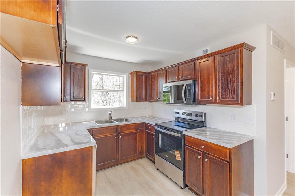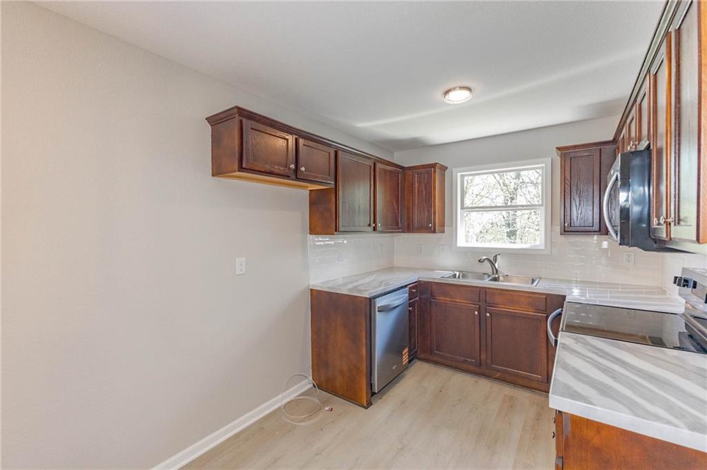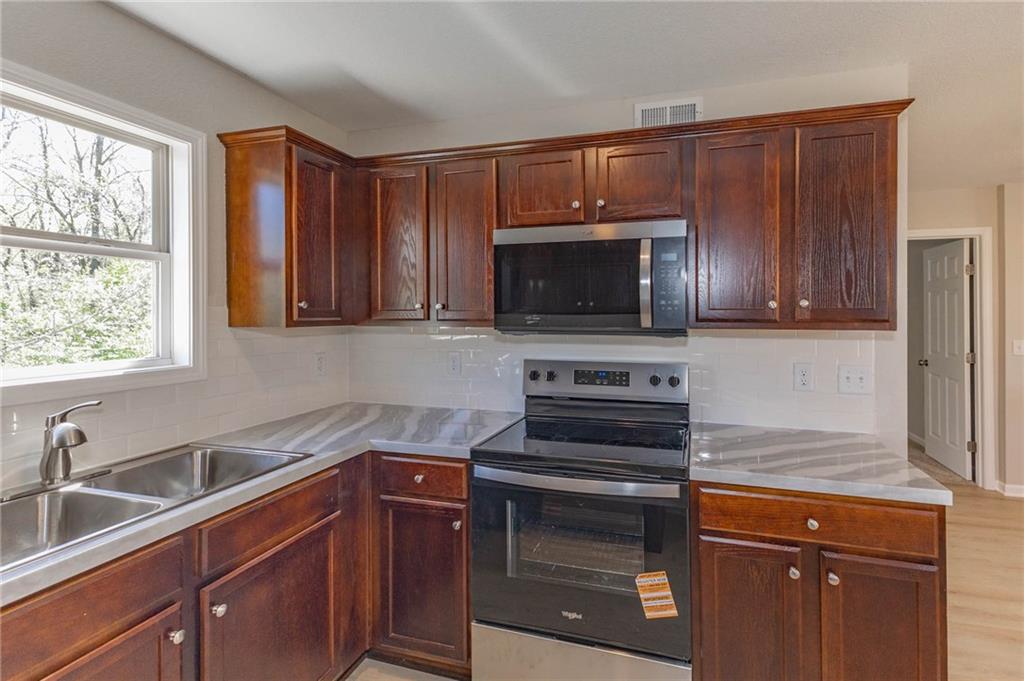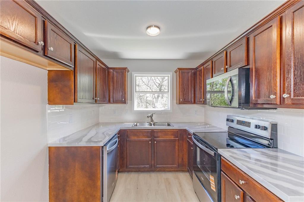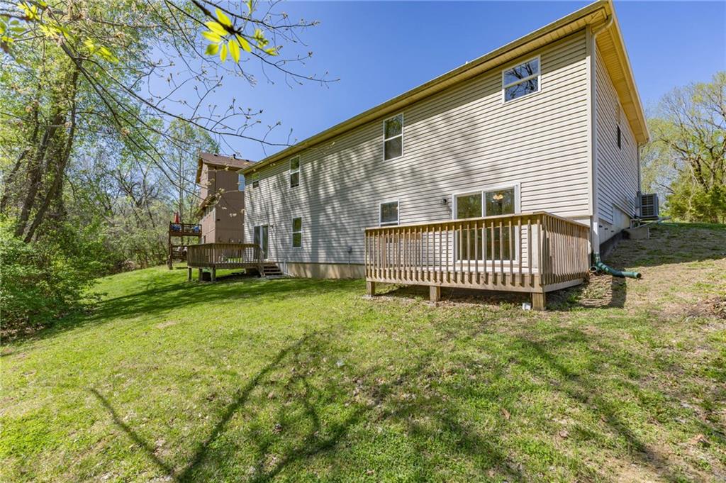 Complete remodel! This one is brand new. The newly remodeled kitchen boasts plenty of cabinet space and all new stainless appliances. New flooring, blinds, paint, light fixtures throughout. HVAC and water heater are only 2 years old. Maintenance free vinyl siding is in perfect condition. LARGE main floor master is a sure bonus. New landscaping, plenty of storage and garage. Finished lower level walk out with bedroom and full bath. Second family room could be changed to a 3rd bedroom. NO HOA. Enjoy sitting on the deck overlooking the treed backyard. Great location with easy hwy access and minutes from Legends.