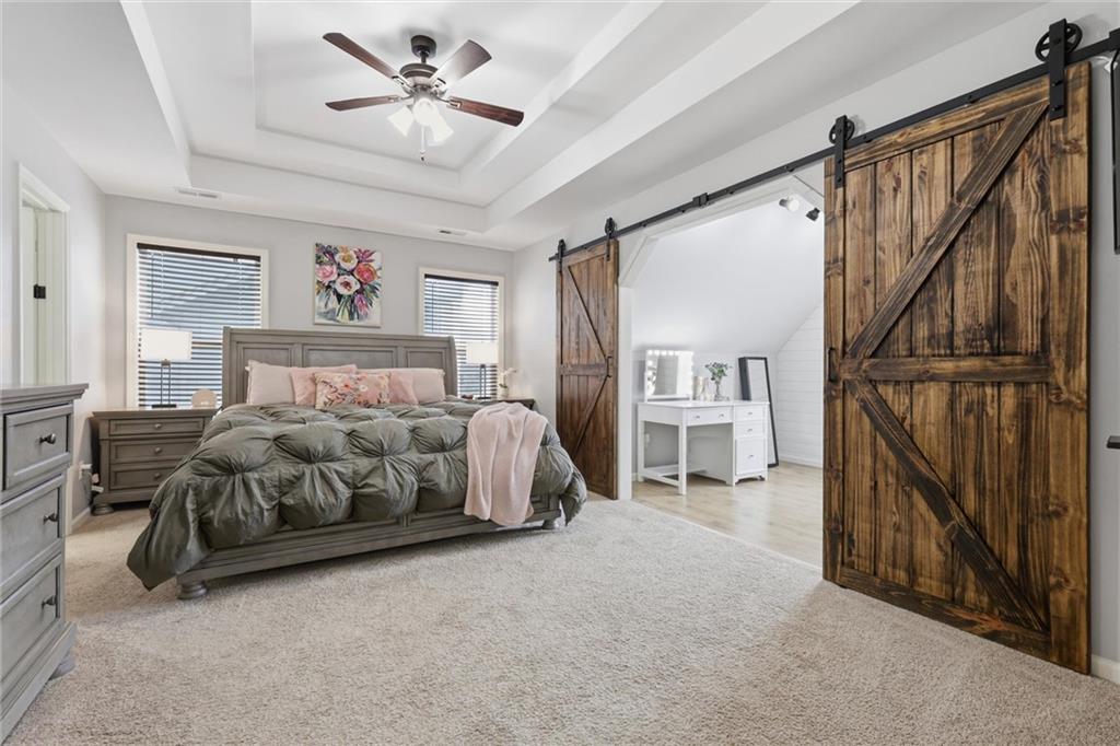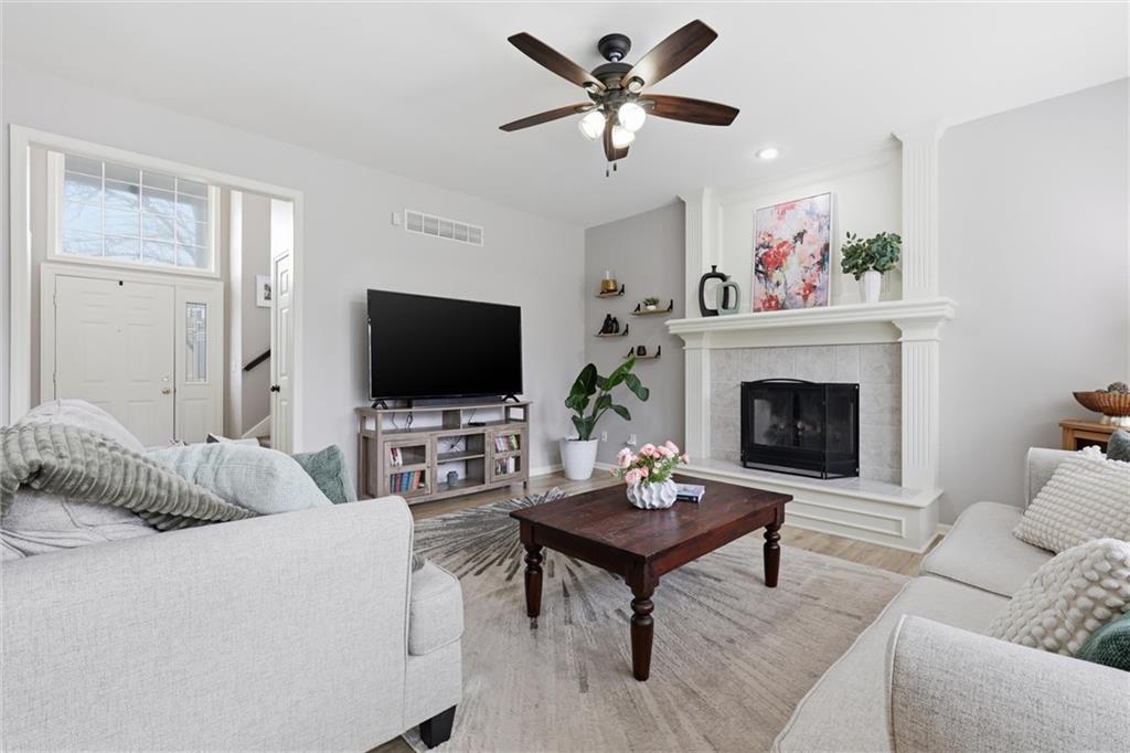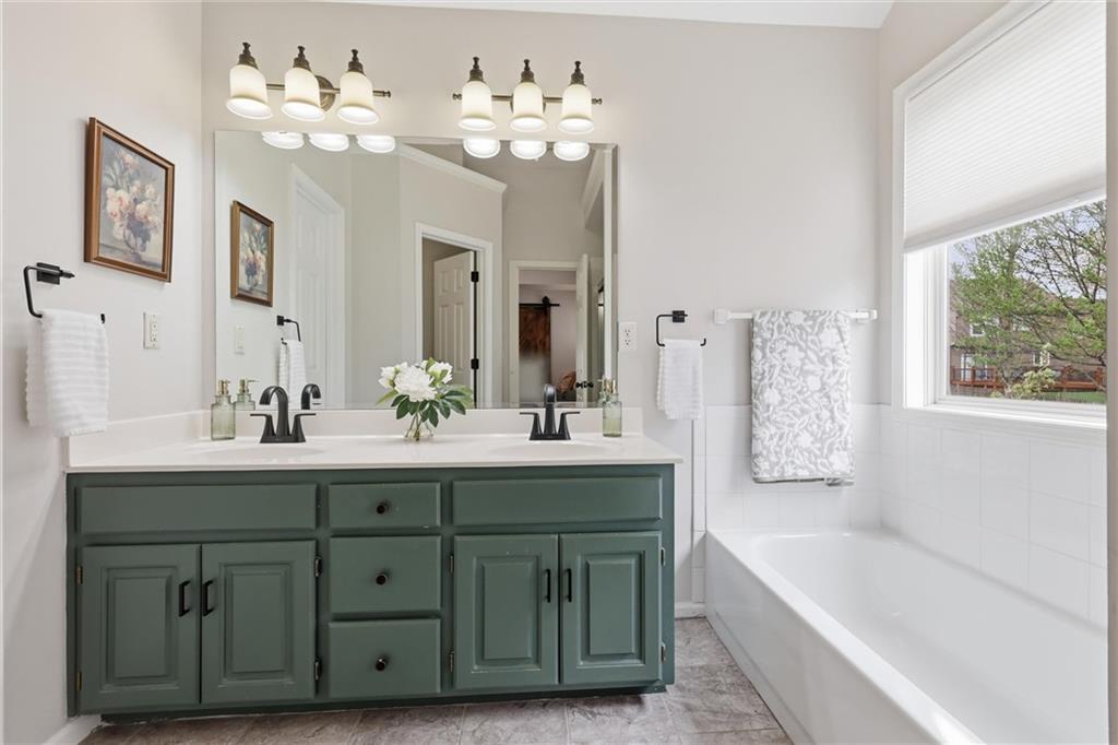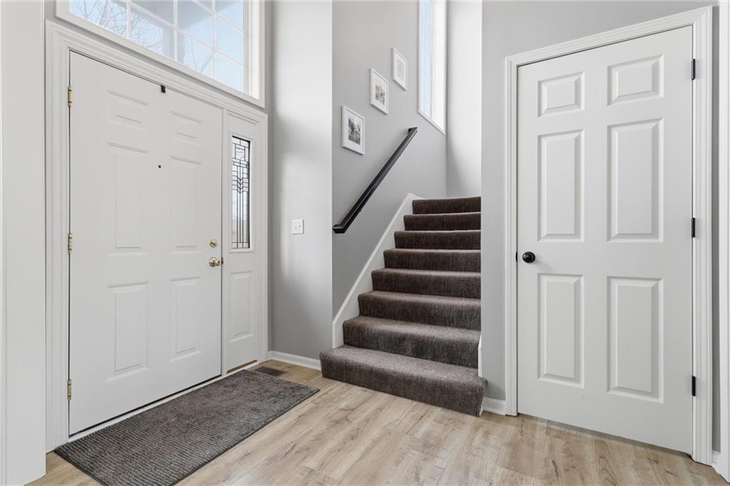 This stunning two-story home in sought-after Parkhill Manor sits on a quiet cul-de-sac off Heritage Trail on a street lined with mature trees. Inside, soaring ceilings and a welcoming entry lead into a beautiful dining room, while the bright, open kitchen offers granite countertops, a breakfast bar, and seamless flow into the family room for easy everyday living. The main level features luxury vinyl plank flooring throughout for a warm feel. The spacious primary suite features a versatile flex room with sliding doors, perfect for a home office, sitting area, or private space. The finished basement adds even more living space with a great recreation room for movie nights or watching the game. Outside, the fenced backyard offers plenty of room to play, along with both a deck and large patio for relaxing or hosting a gathering. This home feeds into Arbor Creek Elementary and award winning Olathe Schools. Located within short distance to the neighborhood pool, Black Bob Park and the local farmers market, and just minutes from shopping, groceries, and dining, this home is one you won’t want to miss.