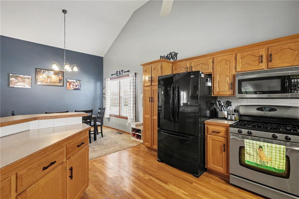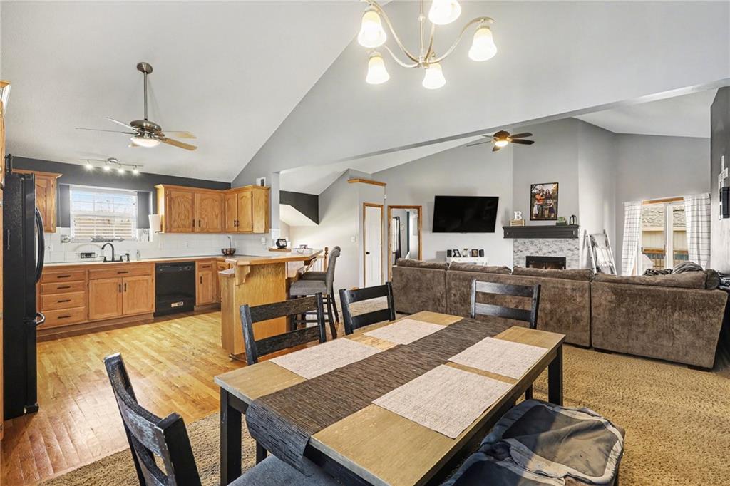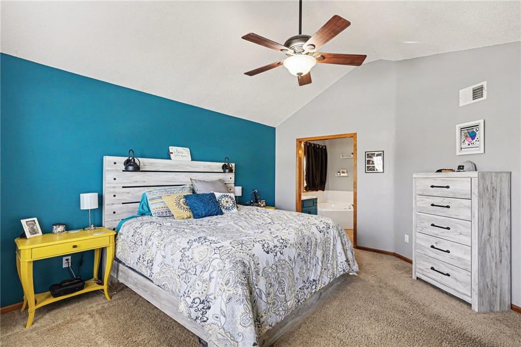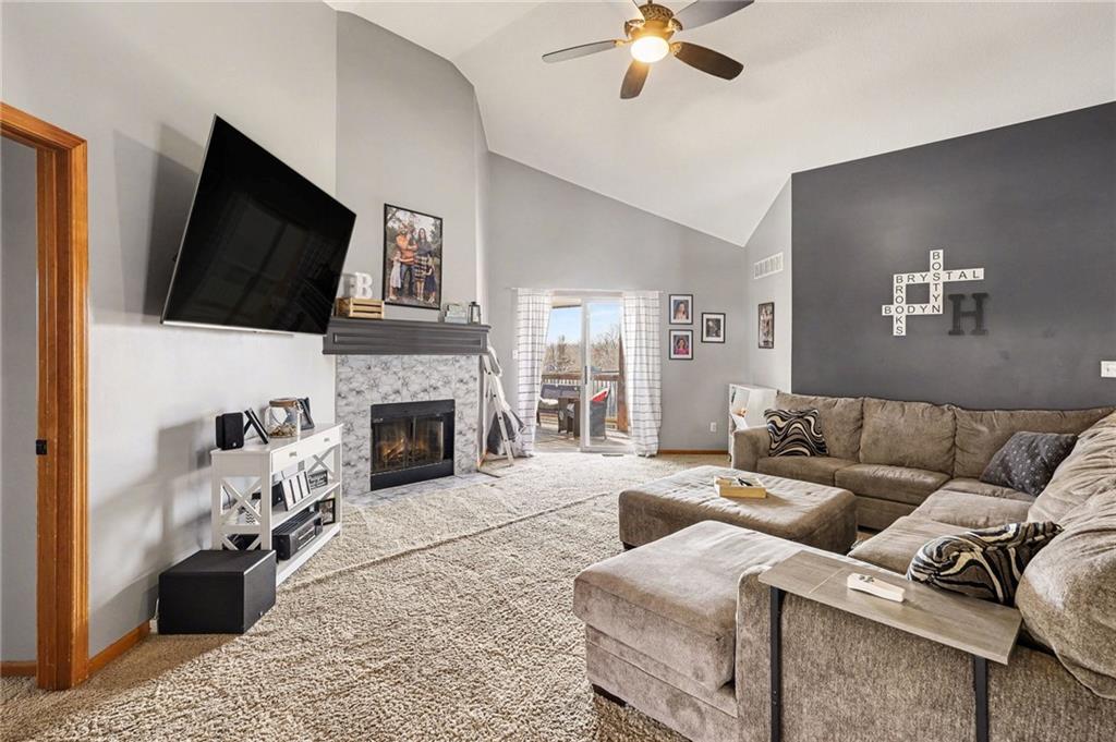 Active in the MLS and ready for showings 3/18/2026. This Ridgewood Hills split-entry checks all the boxes with space where it counts! The main level feels open and airy with vaulted ceilings, a wood-burning fireplace in the living room, and a natural flow into the dining area and kitchen. The covered deck off the main level is a true outdoor living space with a ceiling fan, stairs leading down to a concrete patio and a fully fenced backyard. The main floor primary suite includes a walk-in closet and a private bath with double vanity, soaking tub, and separate shower. Two additional bedrooms and a full bath round out the main level, along with convenient main floor laundry. Downstairs, a fourth bedroom with a full bath adds flexibility for guests or a home office. The remaining basement space offers room to expand, along with plenty of storage or workshop potential. Quick access to I-470 and US-291 puts shopping, dining, and downtown Lee's Summit within easy reach, with Blue Springs schools serving the area.
