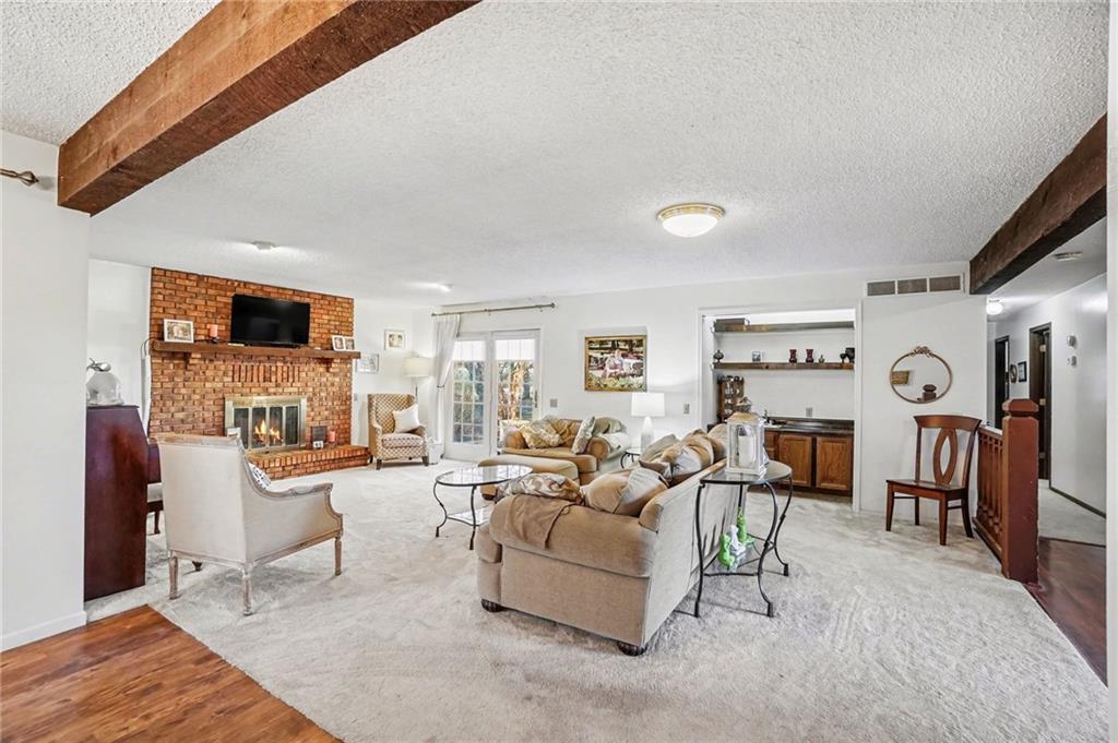 Cul-de-sac ranch • 0.43-acre lot • Main-level living with full basement - Savannah School District. Brick ranch-style home on a 0.43-acre lot at the end of a cul-de-sac in Savannah School District, offering true main-level living. The main floor includes three large bedrooms, and the primary en suite bathroom has a new walk-in shower. Entertaining is a dream in the open-concept layout connecting the renovated kitchen, dining area, and living room. The vaulted-ceiling living room, with a wood-burning fireplace, is surrounded by large windows and two French doors bringing natural light into the main living spaces. Recent updates include new carpet, fresh interior paint, a renovated kitchen, and new primary bedroom shower The lower level features a conforming fourth bedroom with a walkout door, a full bathroom complete with a jacuzzi tub, and a spacious family room for hours of fun. Approximately 800 square feet of unfinished basement space provides room for storage or future finishing. The home includes a two-car attached garage and a patio located just outside the main living area to enjoy a cup of coffee or viewing nature. The property backs to green space and natural surroundings while offering convenient access to Highway 71 and nearby shopping and services.
