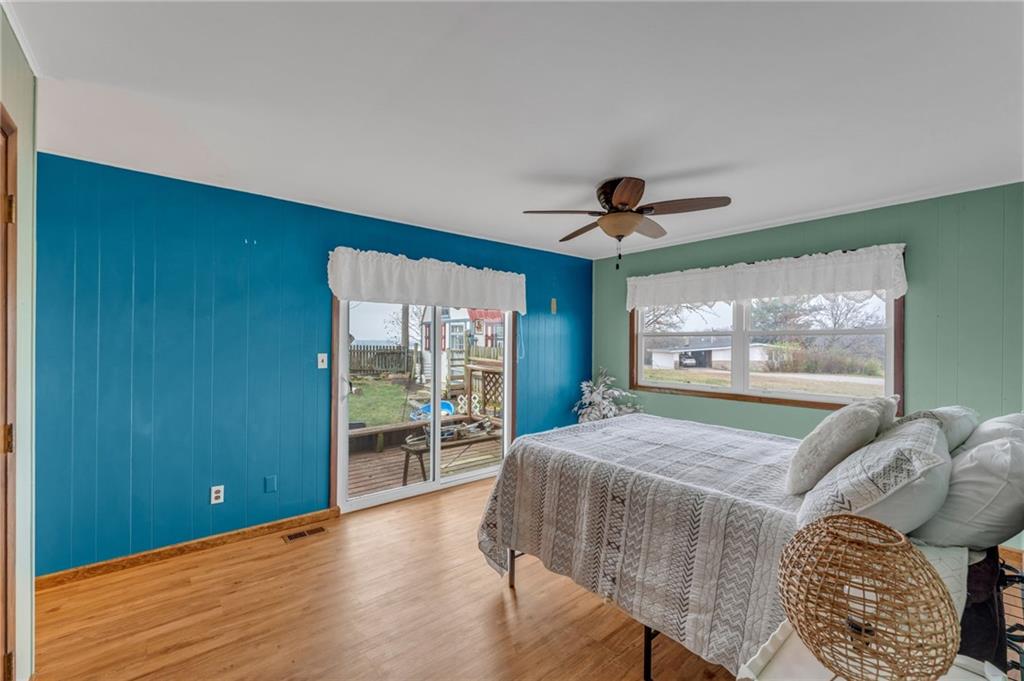 Indian Ridge Subdivision at Perry Lake! Well-maintained split-level home offering 3 bedrooms, 3 bathrooms, and a 2-car garage in a peaceful setting. Enjoy quiet living with quick access to the neighborhood boat ramp, perfect for lake lovers, and located in the Jefferson West School District. This home features recent updates including new kitchen cabinets with granite countertops, newer windows, a newer AC unit, hardwood floors, and updated bathrooms. The finished lower level provides additional living space and flexibility. Outside, the property sits on three lots totaling nearly 1 acres giving you plenty of room to enjoy the outdoors. You'll love the raised garden beds, orchard with 7 fruit trees, and a blackberry patch. A she shed/he shed with its own AC makes the perfect space for hobbies, gardening, or a private retreat. Don’t miss this opportunity for space, updates, and lake living all in one!