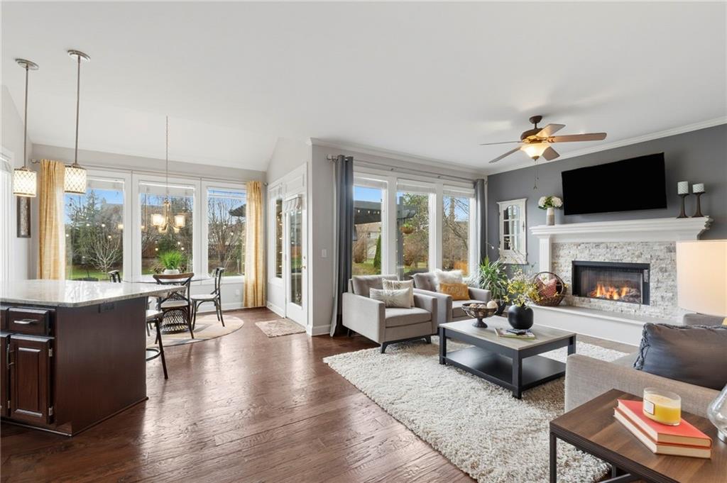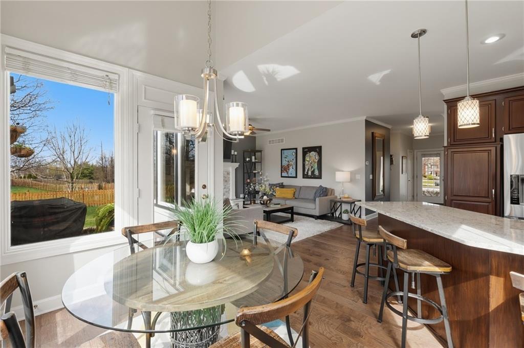 STUNNING home in Blue Valley School District with THOUSANDS IN UPGRADES!! New HVAC, humidifier, and hot water heater (2025), interior paint, new roof replaced in 2022 with added ventilation, exterior paint (2022), and new sump pump (2024). This updated 4-bedroom home with a 5th non-conforming bedroom/office offers major recent upgrades and a fantastic cul-de-sac location right next to the neighborhood pool. Interior remodeled with engineered hardwoods on the main level, stained kitchen cabinets, granite counters, marble backsplash, and pull-out pantry shelving. Stove and dishwasher only 2 years old. Basement features a full bath, family room with large window, bar area with mini fridge & microwave, surround sound speakers, and a 5th non-conforming bedroom/office. Magical BACKYARD OASIS added in 2024 with a paver patio, pergola (bamboo + clear covering), lighting, TV, and stone firepit, full-yard irrigation including beds and patio pots, raised garden beds, and mature fruit trees (apple and peach). Additional features include a big master with vaulted ceilings and huge primary walk-in closet, 200-amp electrical panel, and newer garage door openers. Water filtration and water alkalizing system!! This move-in ready home has all the big-ticket updates already done and a one-of-a-kind backyard built for relaxing or entertaining! Run to make it yours!!