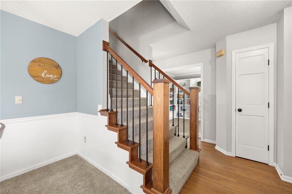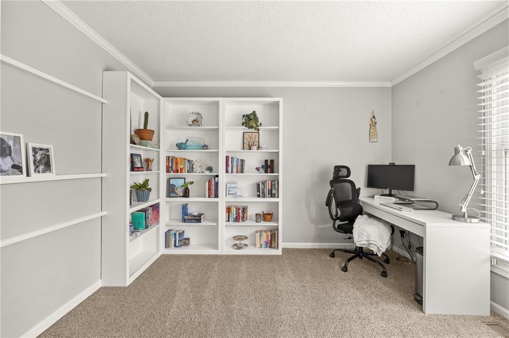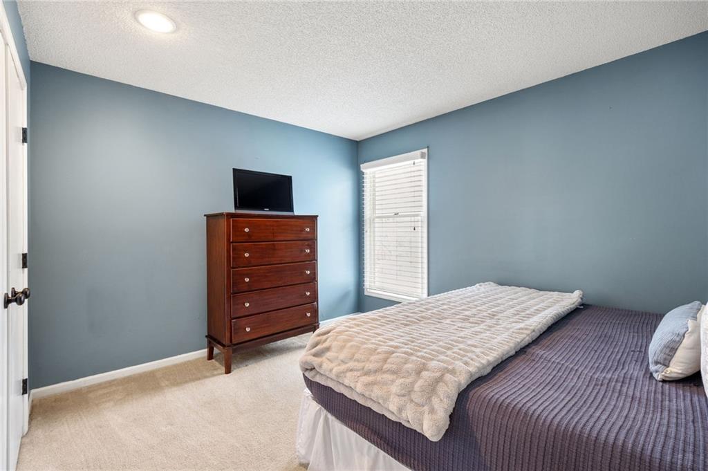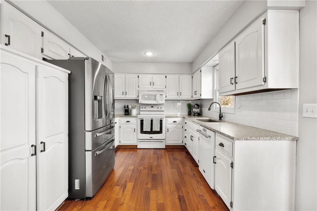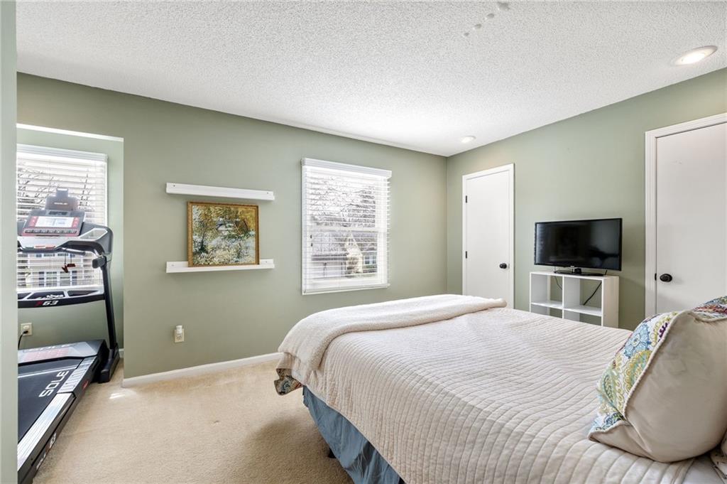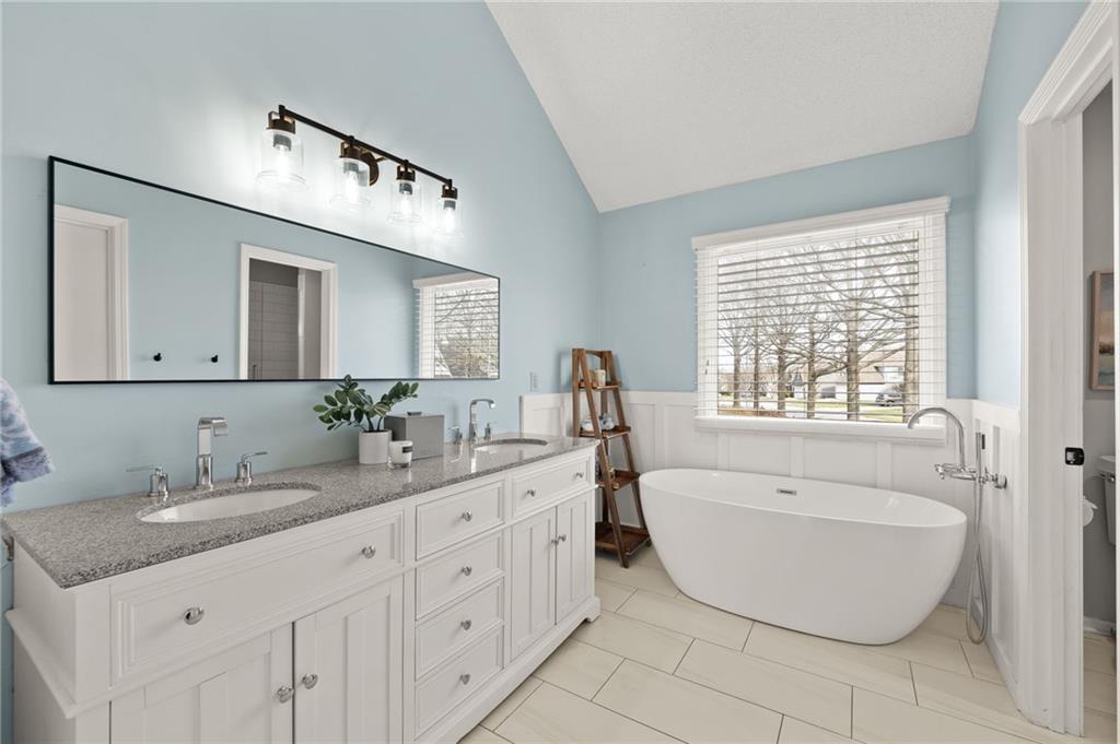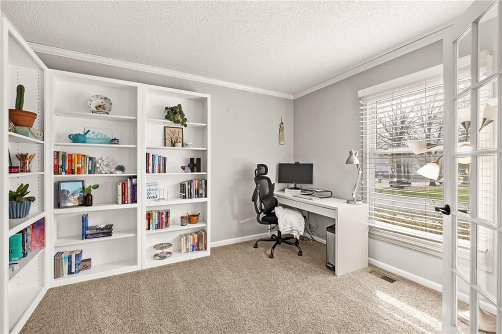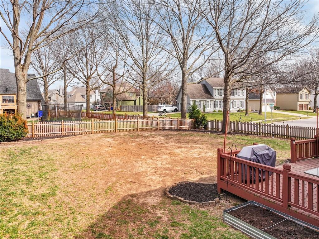 OFFER DEADLINE: SATURDAY, MARCH 28th @ 10:00 AM. Welcome to this beautifully maintained two-story home in the highly sought-after Heatherstone subdivision in Olathe, located within the award-winning Olathe School District. Step through the full glass storm door into a hardwood foyer that sets the tone for the inviting layout. To the right, French doors open to a private office featuring built-in bookshelves and ledge shelving, ideal for working from home. To the left, the formal dining room offers classic charm with a chair rail accent. Just beyond the office, the great room is filled with natural light from a wall of windows overlooking the backyard and features plush carpeting, a masonry fireplace, and white painted built-in bookshelves that create a warm and welcoming focal point. The great room flows seamlessly into the breakfast area and kitchen, both with wood flooring. The breakfast area includes a convenient built-in desk for managing busy family schedules and walks out to an expansive deck overlooking the fenced backyard—perfect for relaxing or entertaining. The adjoining kitchen offers granite countertops, white cabinetry, a pantry, and an undermount black sink with a gooseneck faucet. A laundry and mud room is conveniently located between the kitchen and formal dining room and provides access to the garage. Upstairs, the spacious primary suite features plush carpeting, a vaulted ceiling with ceiling fan, and a beautifully updated ensuite bath with double vanity granite counters, modern soaking tub, tile flooring, and a separate shower with subway tile surround and octagonal tile flooring. Three additional bedrooms, each with carpeting and blinds, share a hall bath with tile flooring and a tiled shower/tub combination. Enjoy a neighborhood surrounded by nature yet just minutes from shopping, dining, and everyday conveniences. Premium living is within reach in this welcoming Olathe community.