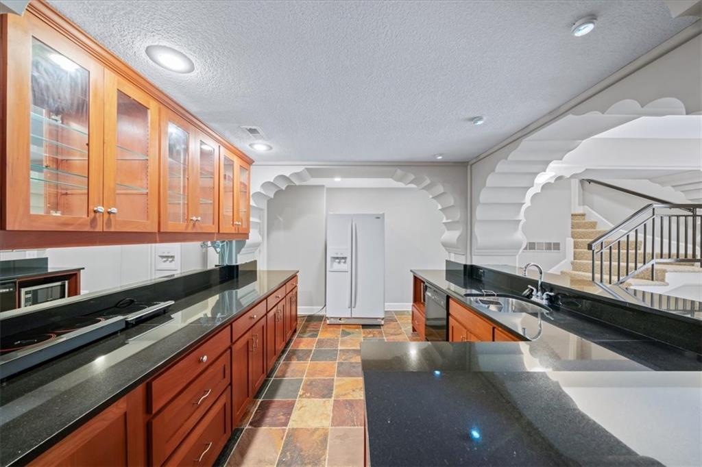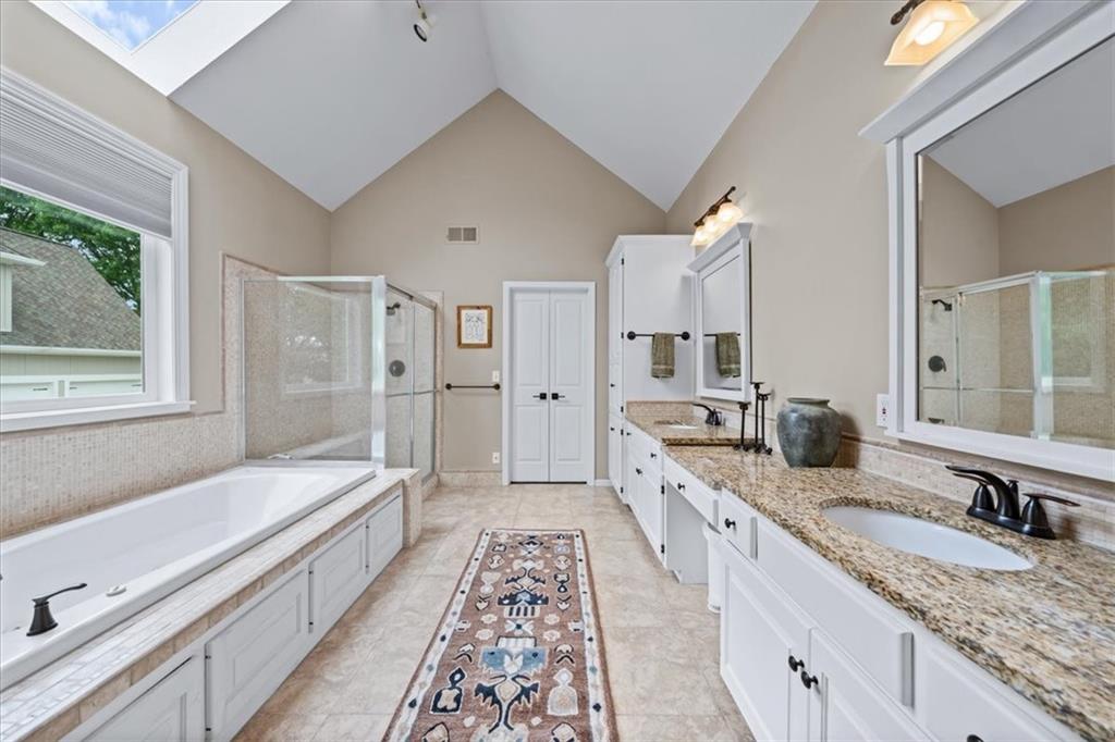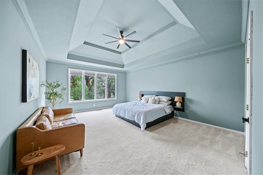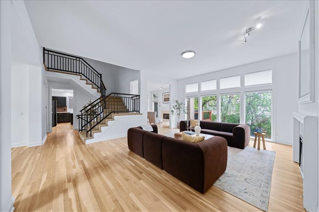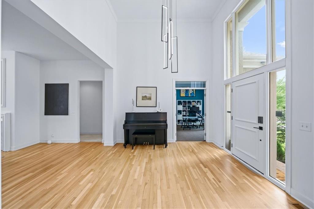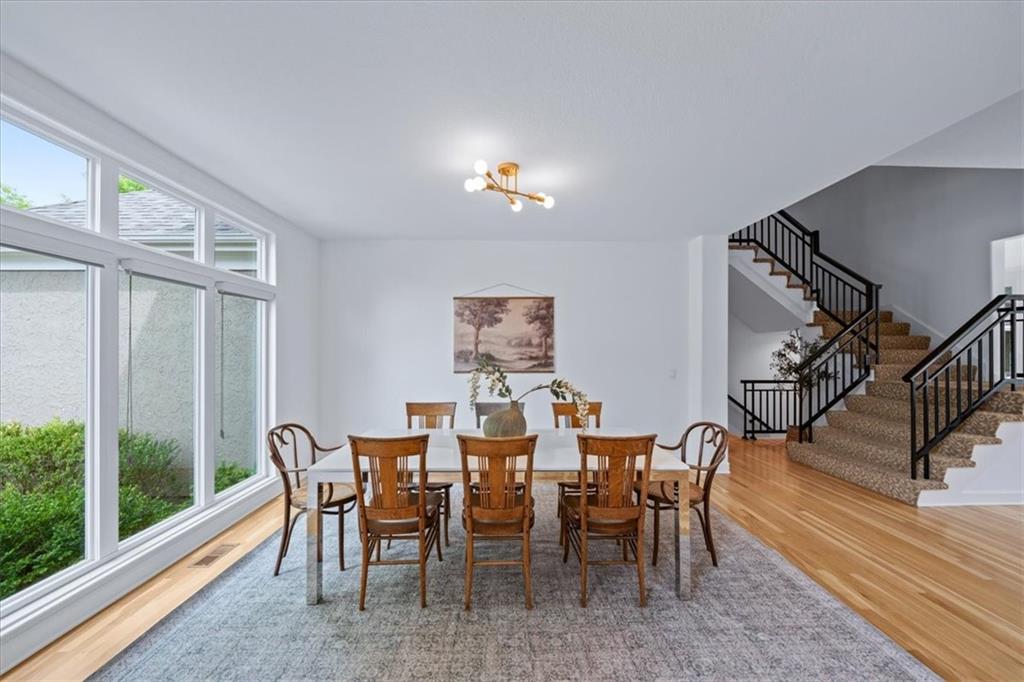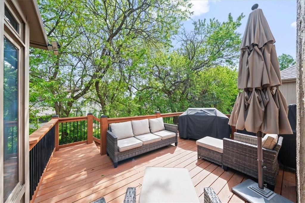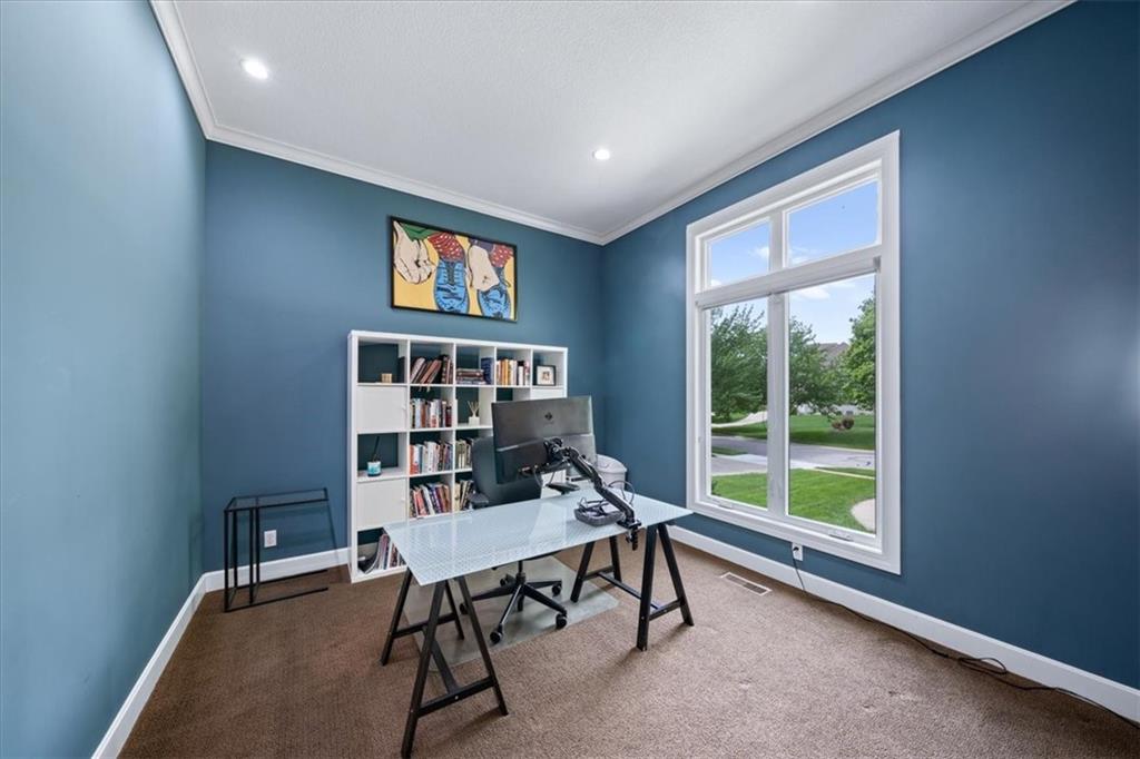Five room (+2 & office), 4.2 bath Overland Park luxury living in Blue Valley schools! Entering the front door places you in an expansive and welcoming double-height foyer with gleaming hardwoods throughout. Light from full length windows on each wall highlight the logical and open flow of the ground floor, balanced between formal and informal spaces. To the L is the formal DR, and to the R is private office space with high ceilings. Next to the office is the Lg primary bedroom with its own bath, skylight, and XL closet. Through the entry is the living room anchored by a gas fireplace, then a sitting room w/a 2nd gas fireplace and XL windows, a breakfast area, and access to the three seasons patio with its own fan, heat, and A/C. The patio further opens to the outside deck for grilling and to enjoy relaxing evenings. The newer modern Kit includes brass hardware adorning black cabinets, an island with flat-top induction stove, tons of prep space and storage options, barstool area, quartz countertops, and optional coffee center. The Kit connects to a pantry and laundry rm, storage closet, and 1/2bth in the hallway leading to the XL 3-car garage. Upstairs are 3 bedrooms. Room 2 has built-in storage, a window bench under Lg windows, and adjoining shared bth with room 3. Room 4 has its own full bth and Lg walk-in closet. The basement serves as its own self-sufficient living quarters, with 3 additional nonconforming rooms, one full bth and one 1/2bth, a full Kit, LR, and walkout to back patio. The DR is next to the Kit, which has black granite countertops and oak cabinets flanking a sink, dishwasher & oven, while more storage is tucked behind the wall. Room 5 has an XL storage area, built-in shelves, an extra W/D connection, and dual upgraded HVAC for the home. The important things have gotten the right attention: new roof, new kit, and upscaled HVACs. Easy highway access makes it mere minutes from restaurants, shopping, and bustling attractions around the metro area.