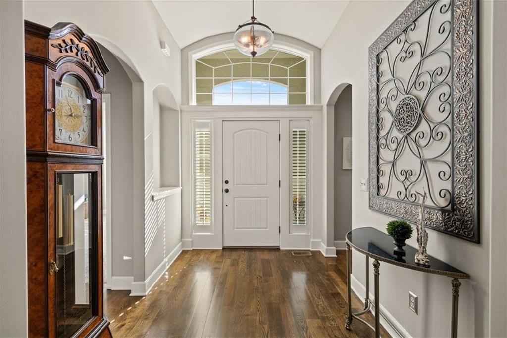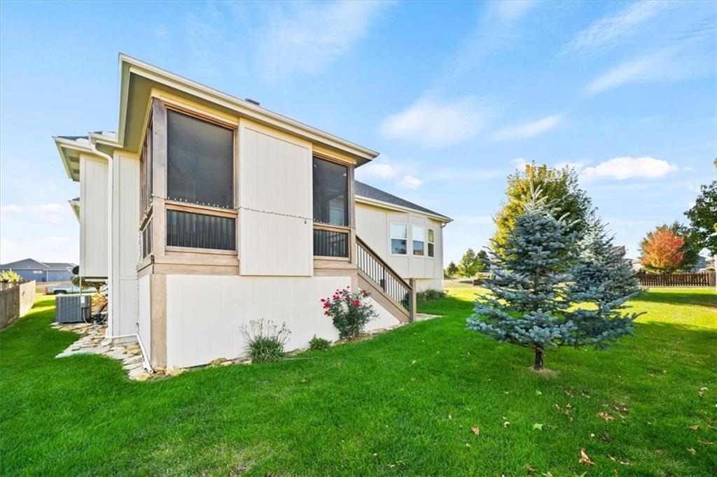 Meticulously maintained reverse 1.5-story home on a daylight lot featuring 4 bedrooms (2 on the main level), 3 full bathrooms, and a 3-car garage. The primary suite offers a luxurious ensuite bath with tile finishes, double vanity, walk-in closet, Euro shower, and a relaxing soaker tub. The laundry room is conveniently located just off the primary closet. The main level features gorgeous hardwood floors, plantation shutters, and a stunning stone fireplace. In the kitchen you will see granite countertops, a walk-in pantry, and stainless-steel appliances, making the it both beautiful and functional. The finished lower level includes two additional bedrooms and a spacious family room, perfect for guests, entertaining, or additional living space. Enjoy outdoor living with a screened-in covered deck featuring a fabulous outdoor fireplace—ideal for relaxing or entertaining year-round.