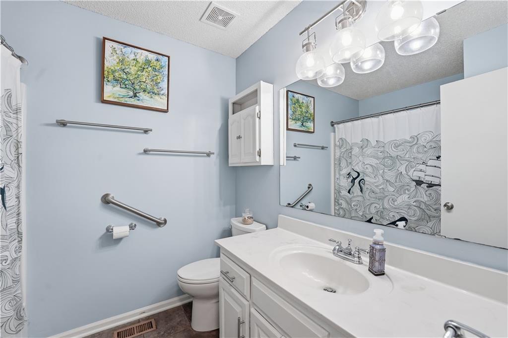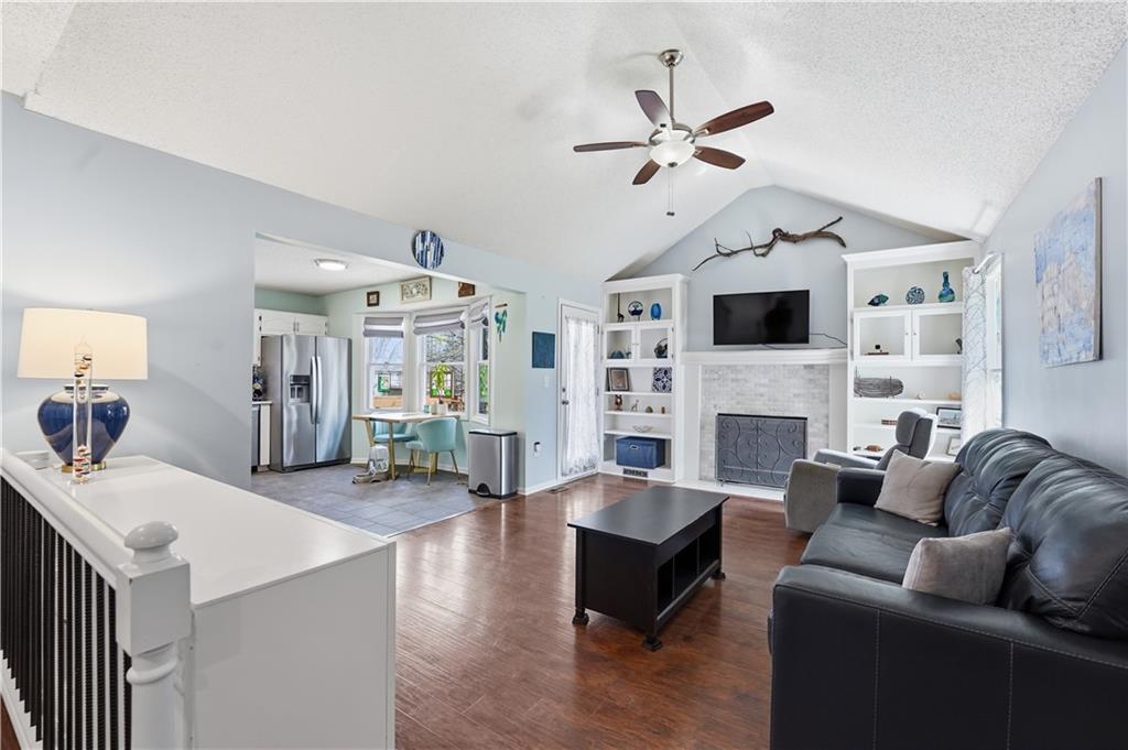 True ranch with main-level living! This well-maintained 3 bedroom, 3 bath home offers a comfortable and functional layout with everything you need on one level. The living room features vaulted ceilings and a fireplace surrounded by built-ins that create a beautiful focal point for relaxing or gathering with guests. The spacious, open kitchen includes a walk-in pantry and convenient main-floor laundry, making everyday living easy and efficient. Just off the kitchen, step outside to the deck and enjoy the peaceful backyard with mature trees. The main level includes three bedrooms and two full baths, including a comfortable primary suite. The finished lower level expands the living space with room for a theater area, office, playroom, or game room. A third full bath and a large storage area with shelving provide additional flexibility and organization. Additional improvements include sealed and insulated floor joists and a premium HVAC system with air and dust purifier that has been regularly maintained. Conveniently located near shopping, dining, fitness centers, major highways, and healthcare, and within the Staley High School boundaries, this home offers the ease of true ranch living with extra space when you need it.