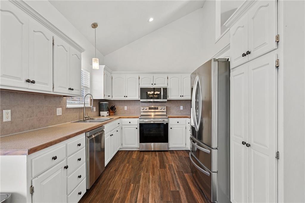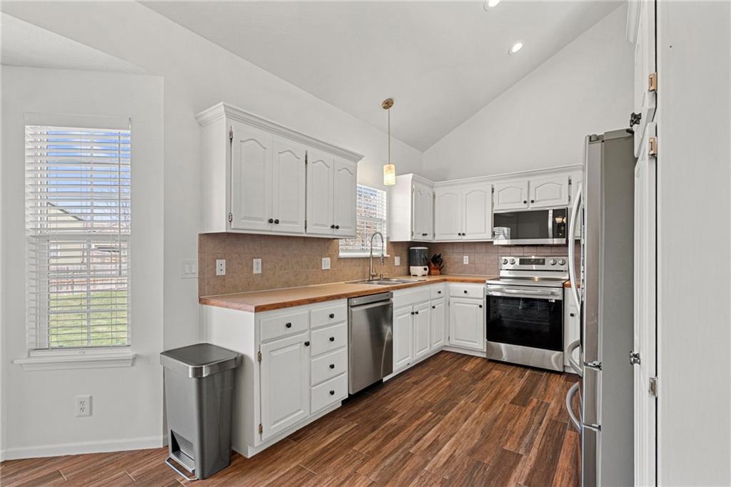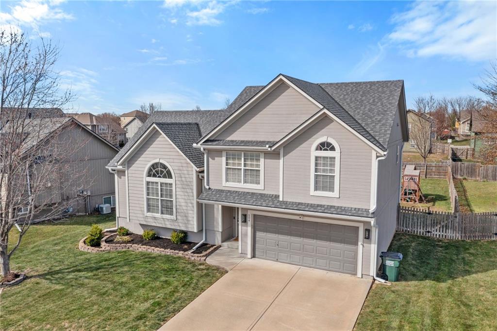Move-in ready and full of great updates! This well-maintained 3-bedroom, 2.5-bath home offers a spacious and inviting layout with great natural light throughout. The large living room features a gas fireplace and beautiful south-facing windows that fill the home with sunlight. The kitchen offers plenty of countertop space, white cabinets, and newer LG appliances, with the refrigerator staying with the home. Many interior light fixtures have been updated, and much of the popcorn ceiling has been removed to give the home a more modern feel. The spacious primary suite includes a walk-in closet and private bathroom with double vanities and newly updated faucets. Secondary bedrooms are nicely sized, providing comfortable space for family, guests, or a home office. Major mechanical updates provide peace of mind with the roof, HVAC system, and water heater all under 5 years old. The washer and dryer are also included with the home. The unfinished basement offers excellent storage space and features an egress window, providing a great opportunity to finish the space and add a 4th bedroom in the future. Step outside to a large fenced backyard with plenty of room to play or entertain, and the playset stays with the home. Conveniently located less than one mile from the elementary and middle school, with quick access to local shopping, dining, and highways. This home is clean, well cared for, and truly move-in ready. Don’t miss this great value!